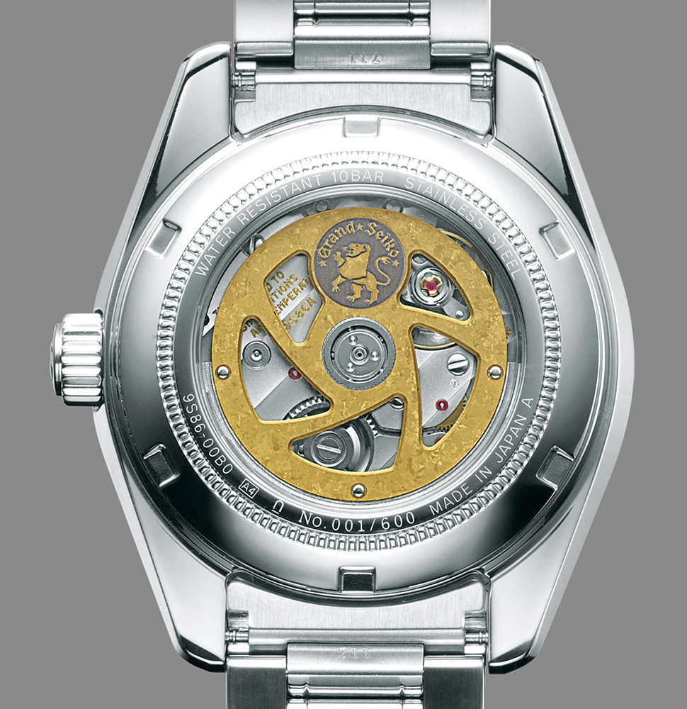 W jego wnętrzu znalazł się mechanizm z automatycznym naciągiem sprężyny 9S86, który został zbudowany w oparciu o werk 9S85, który został zaprezentowany w roku 2009. W nowej konstrukcji postanowiono dodać 24 godzinne wskazanie drugiej strefy czasowej – dzięki temu osoby podróżujące pomiędzy np. dwiema siedzibami firm, mogą stale śledzić czas w obu tych miejscach. Mechanizm nosi oznaczenie „Hi-beat”, co symbolizuje wysoką częstotliwość pracy, wynoszącą w tym przypadku 5Hz (36000 VpH). Należy również wspomnieć, że w przypadku tego konkretnego modelu, różni się on nieznacznie od pozostałych, które stosowane będą w nielimitowanych egzemplarzach. Zastosowano taki zabieg, aby podkreślić moment wprowadzenia nowej konstrukcji na arynek. Spoglądając przez przezroczysty dekiel wypełniony szafirowym szkłem, od razu ujrzymy w czym owa różnica się objawia, a mianowicie w kształcie i kolorze wahnika. W modelu tym wykonano go z tytanu, a jego kształt przywodzi na myśl bardziej turbinę bądź felgę. Użycie tytanu jest argumentowane jego wysoką sprężystością oraz odpornością na drgania, co z kolei przekłada się na mniejsze siły przenoszone na centralne łożysko. Umieszczono na nim również duże i doskonale rozpoznawalne logo serii Grand Seiko. Producent deklaruje dokładność działania na poziomie od +5 do -3 sekund na dobę oraz rezerwę chodu wynoszącą 55 godzin. Do łożyskowania jego ruchomych elementów użyto 37 kamieni.