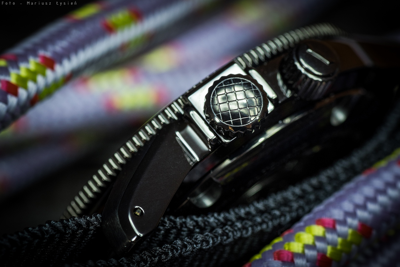 Fotografuje się go trudno bo praktycznie cały jest czarny, ale to naprawdę fajny zegarek. Porządnie wykonany i wszystko działa jak należy. Na ową wskazówkę GMT można przymknąć oko, chyba że ktoś będzie ciągle oglądał to pod mikroskopem. Przyznam, że zegarek jest dla mnie stosunkowo dużym zaskoczeniem. Dlaczego? Dawno żaden zegarek w tej klasie cenowej nie zrobił na mnie tak dobrego wrażenia.