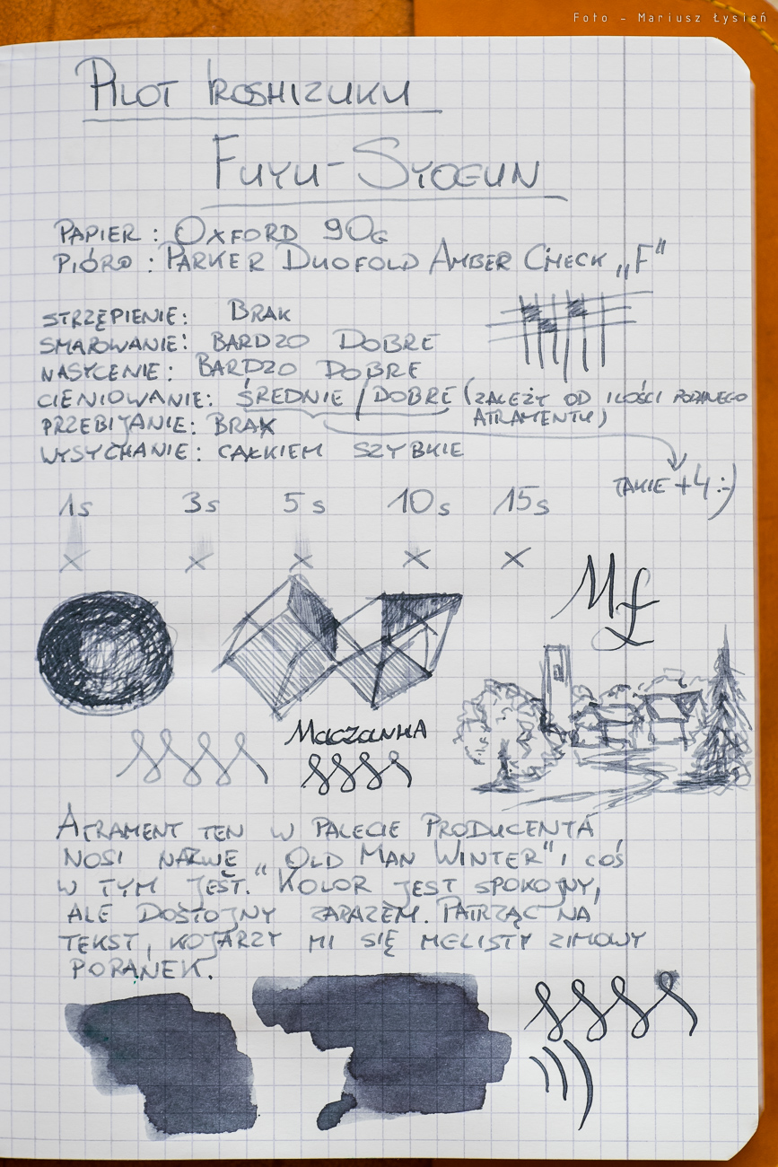 Na ten moment jest to test trzeciego atramentu z serii Iroshizuku – tym razem w kolorze szarym. Zapraszam do klikania w galerię i oglądania dużych zdjęć, gdyż po utworzeniu galerii są one odrobinę rozjaśnione i dopiero po najechaniu na nie kursorem przybierają właściwe nasycenie.