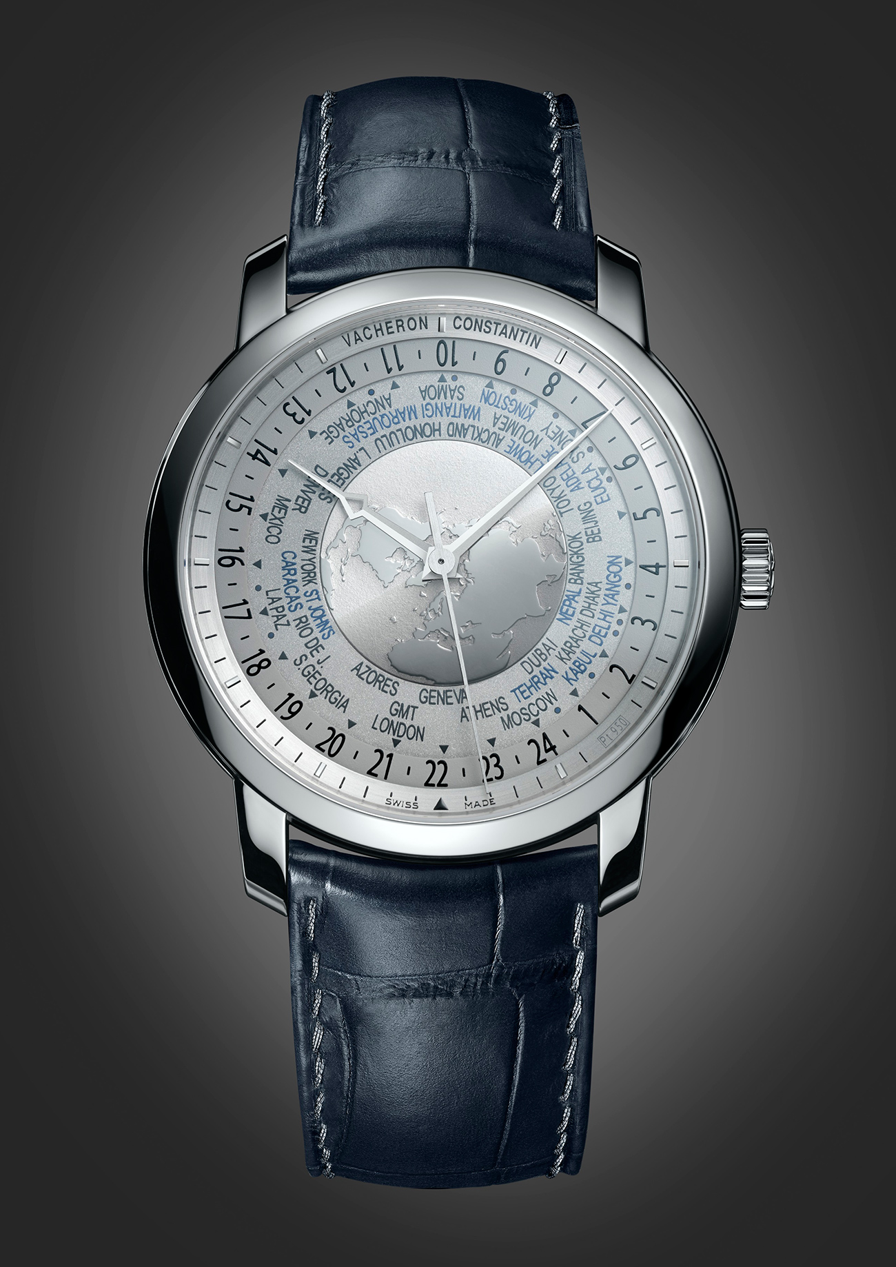 Dodatkową funkcją jest wskazanie dnia i nocy dla poszczególnych części świata, a to wszystko obsługiwane jest za pomocą prostego, acz wydajnego systemu sprzężonego z koronką. Rozwiązanie to zostało opatentowane przez manufakturę VC. Tarcza składa się z zewnętrznego pierścienia z podziałką minutową oraz kilku dysków zawierających odpowiednio skalę 24 godzinną, nazwy miast dla których możemy odczytywać czas, wewnętrznego będącego graficzną interpretacją naszego globu, oraz przezroczystego dysku poruszającego się ponad nim, a na którym naniesiono gradient odpowiadający za wskazanie dnia i nocy.