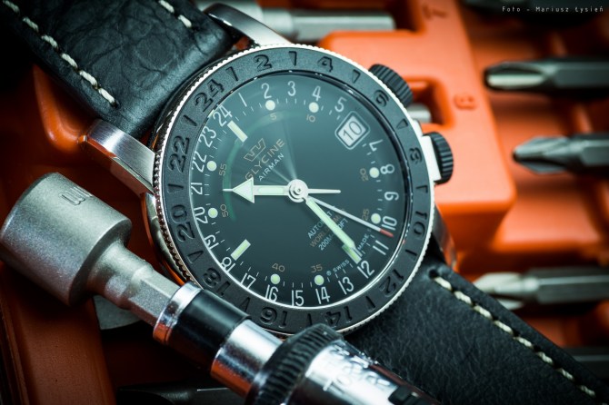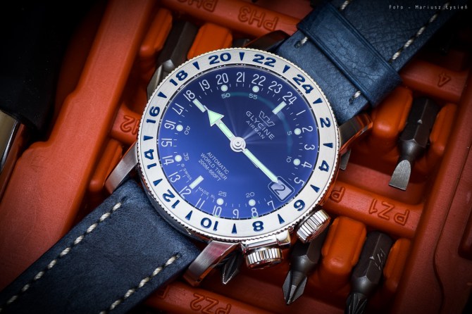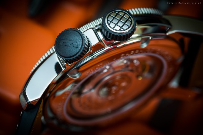 Wprawne oko być może zauważy, że główną różnicą funkcjonalną jest ilość wskazówek – wynika ona jedynie z faktu, że model „17” przybył w wersji o nazwie „purist” – jest ona pozbawiona dodatkowej wskazówki GMT. Kształt koperty wykonanej ze stali nierdzewnej oraz wszystkich przynależnych do niej elementów jest identyczny obu zegarkach. Sama koperta mierzy 46mm średnicy. Trzeba przyznać, że zegarki są spore, jednak pomimo to, całkiem nieźle układają się nawet na przeciętnej wielkości nadgarstkach. Dzieje się tak za sprawą stosunkowo niewielkiej wysokości czasomierzy oraz krótkim uszom.