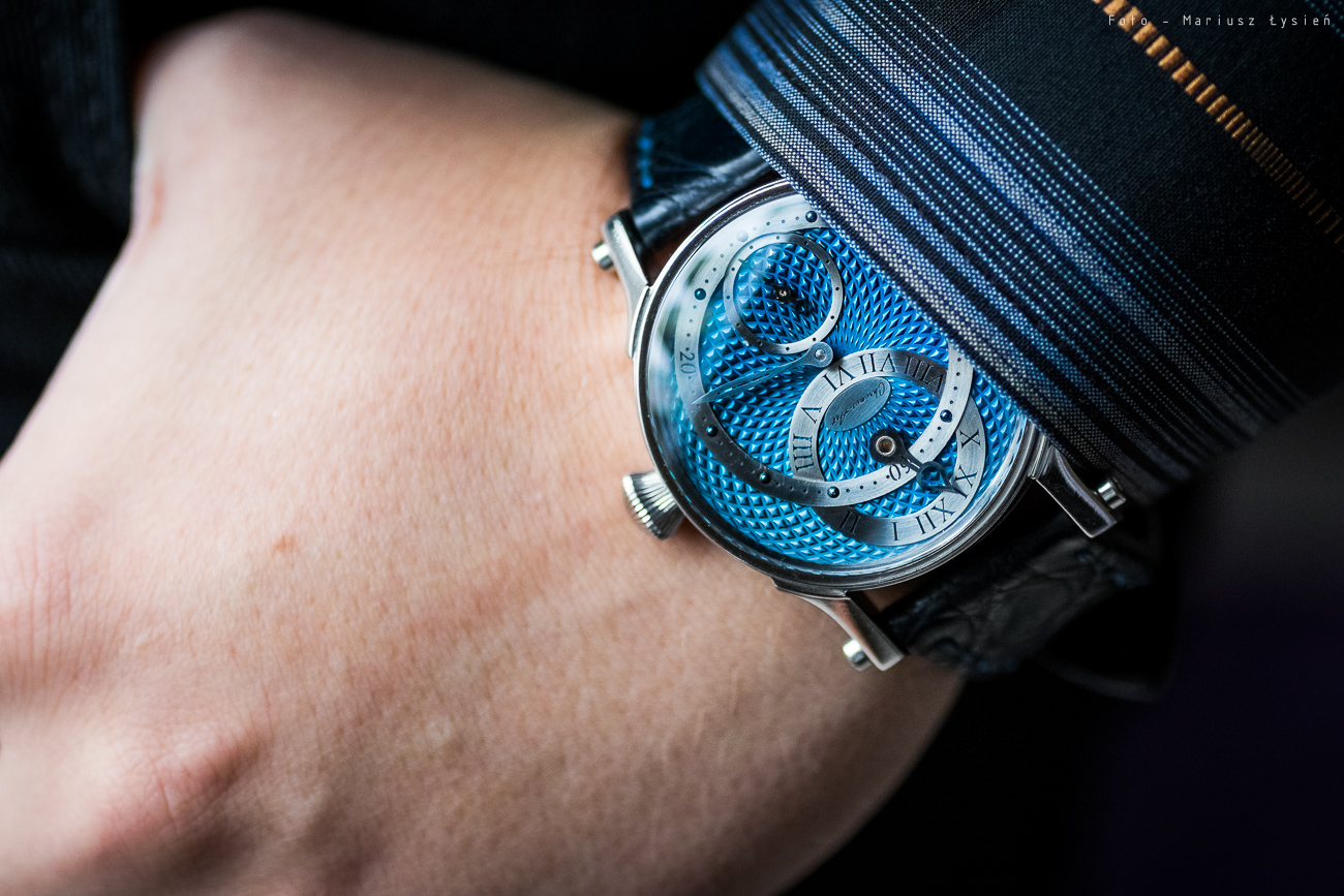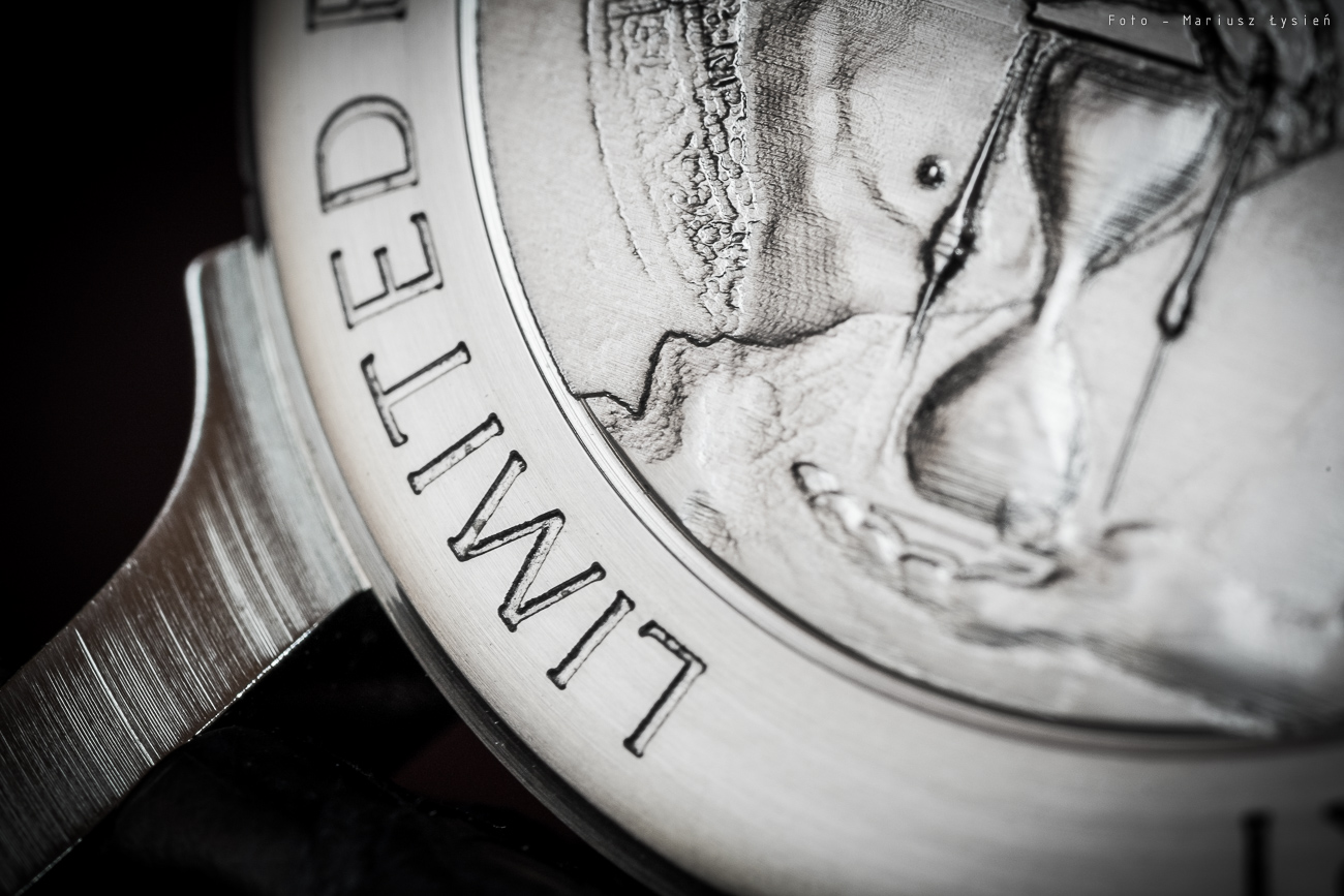 Jest też i łyżka dziegciu. Dla osób przyzwyczajonych do masowej, maszynowej produkcji, a chcących oglądać swoje zegarki pod dużym powiększeniem, pewne elementy mogą im wydawać się nie do końca dopracowane. Rozcięcie wskazówki godzinowej w jej szpicu, niektóre otwory na śruby mocujące podziałki, powierzchnia np. wskazówki minutowej czy też niektóre krawędzie wycięć elementów pokazują, że jest jeszcze nad czym popracować. Z drugiej strony opisywany egzemplarz jest tak jak wspomniałem pewnym wariantem pokazowym, w którym zostanie jeszcze poprawionych wiele elementów. Dodatkowo jest to produkcja w dużej mierze ręczna, która daleka jest od produkcji masowej (może i często dokładniejszej aczkolwiek nie noszącej znamion przyłożenia ręki autora do wyprodukowanego przedmiotu).