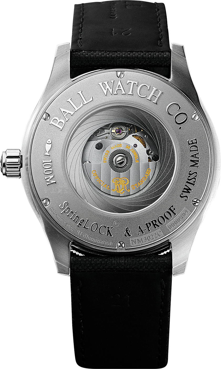 Elementem mocno wyeksponowanym jest karbowany pierścień lunety. W dodatku jest on obrotowy i służy do obsługi systemu A-PROOF, który został opatentowany przez firmę BALL. Jest on związany z zabezpieczeniem mechanizmu przed szkodliwym wpływem pola magnetycznego. Producent podkreśla, że standardowo stosowane w werkach wielu producentów chronią je przed wpływem magnetyzmu jedynie do wartości 4800A/m. Oczywiście kwestia zabezpieczenia czasomierzy przed wpływem magnetyzmu została podjęta już dawno temu przez wielu producentów. W drodze wypracowanych rozwiązań, najczęściej stosowanym jest umieszczenie werku w klatce z miękkiego i odpornego na działanie pola magnetycznego metalu. Ten sposób jednak uodparnia nasz czasomierz najczęściej jedynie do wartości 12000A/m.