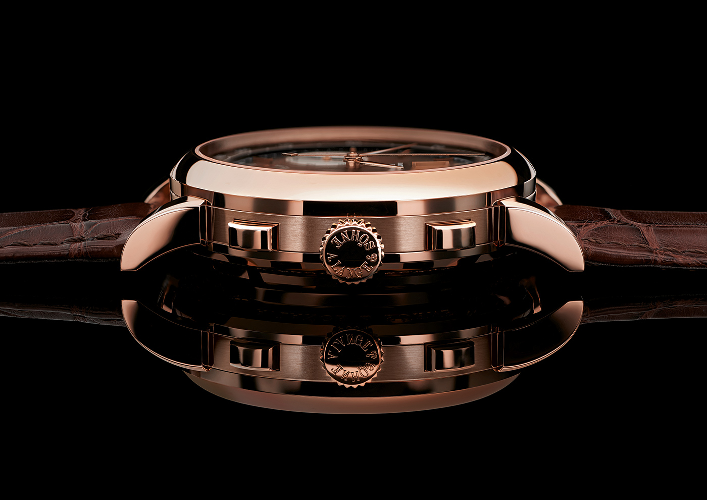 Koperta mierzy 41mm średnicy i została wykonana z 18 karatowego różowego złota. Jej proste kształty dobrze komponują się z wydatnymi proporcjami takich elementów jak na przykład pierścień lunety. Także połączenie powierzchni szczotkowanych oraz polerowanych na wysoki połysk nadaje dodatkowej atrakcyjności temu elementowi. Z prawej strony koperty umieszczono przyciski umożliwiające obsługę funkcji stopera oraz koronkę ozdobioną nazwą manufaktury.