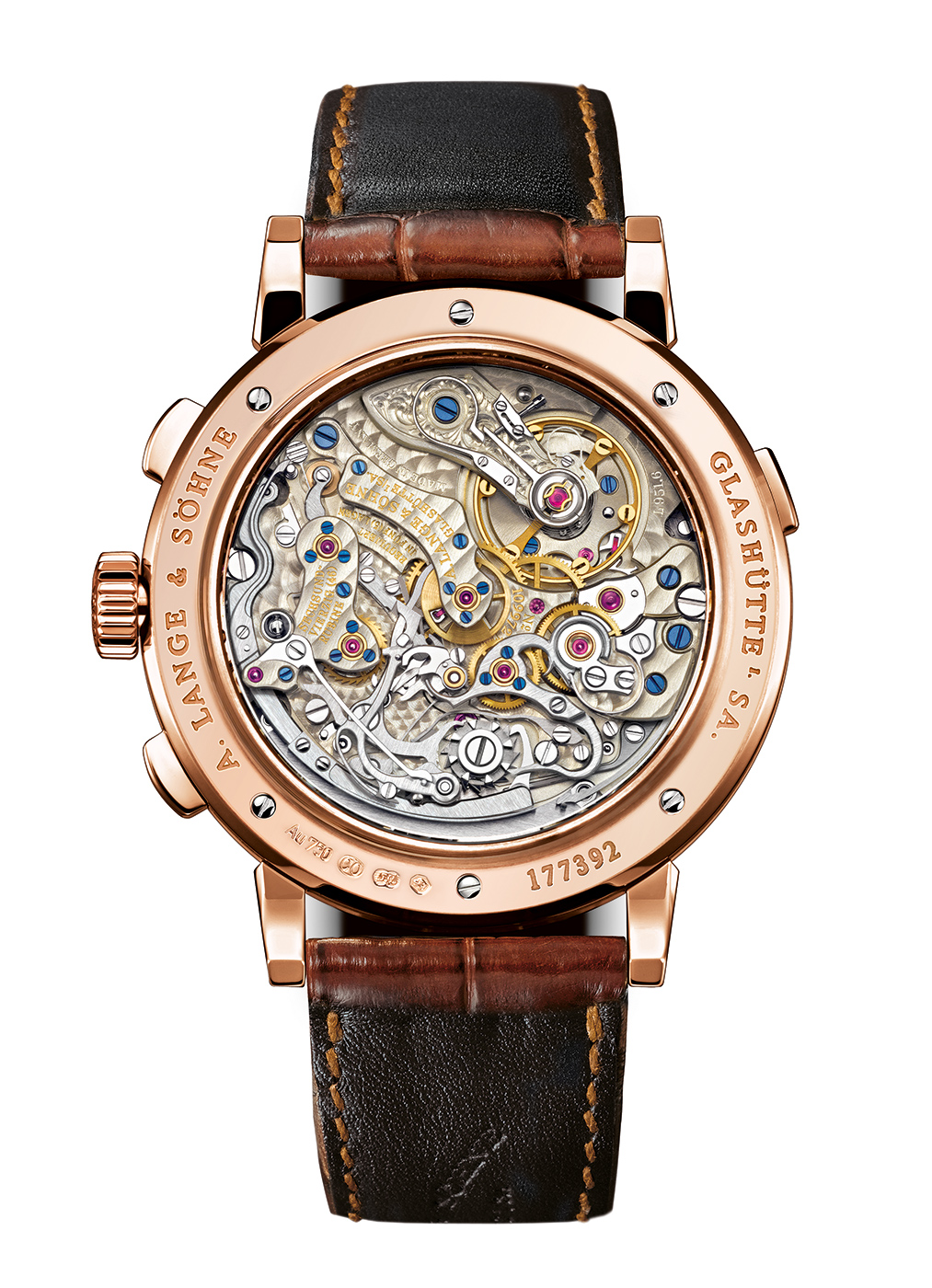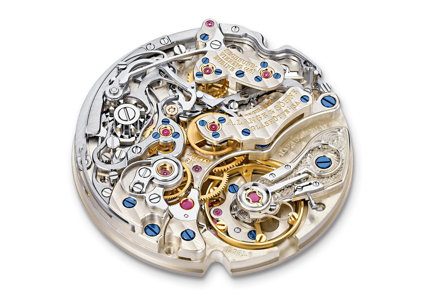 Kaliber L951.6 z manualnym naciągiem sprężyny został zaprojektowany i wykonany przez manufakturę A. Lange & Söhne. Na jego budowę składa się aż 451 komponentów. Z uwagi na komplikację chronografu zdecydowano się na użycie tradycyjnego koła kolumnowego. Oczywiście werk posiada wiele elementów charakterystycznych dla tego producenta – są nimi płyty wykonane z tzw. „niemieckiego srebra”, złote szatony mocowane przy pomocy śrub, czy też bogato zdobione motywem roślinnym elementy wychwytu.