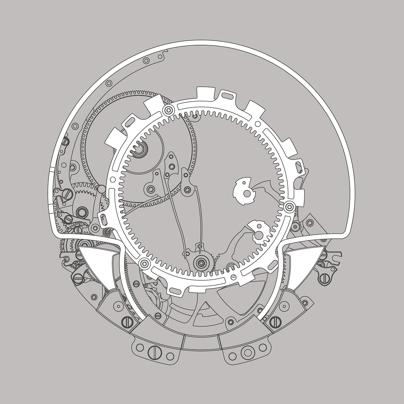 Symetrycznie na godzinie 4 oraz 8 widoczne są młoteczki dzięki którym jest wprawiany w wibracje gong, którego główny element jest widoczny dookoła cyferblatu. Konstrukcja centralnego elementu została tak skonstruowana, by wygrywać dźwięk zróżnicowany w zależności od tego czy wybijana jest pełna godzina, czy też interwały 10 minutowe bądź minutowe.