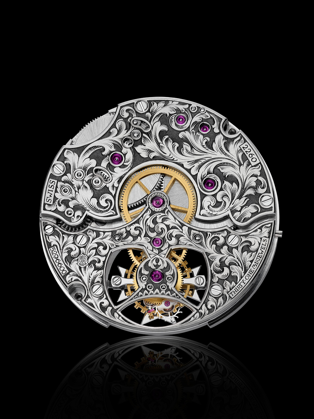 W obu przypadkach zarówno awers jak i rewers mechanizmu, zostały pokryte ręcznie wykonywanym grawerunkiem, którego precyzja wykonania sięga najwyższego poziomu. Średni czas grawerowania jednego mechanizmu 4400/1 to niewiele ponad 10 dni. Z tego też względu zrezygnowano z tradycyjnego podejścia do cyferblatu i powierzchnię tarczy stanowi tak naprawdę mechanizm. W przypadku zegarka z tourbillonem, na godzinie 12 umieszczono wskaźnik rezerwy chodu. Na godzinie 6 widoczna jest klatka tourbillonu, której obrót trwa 60 sekund czyli 1 minutę.