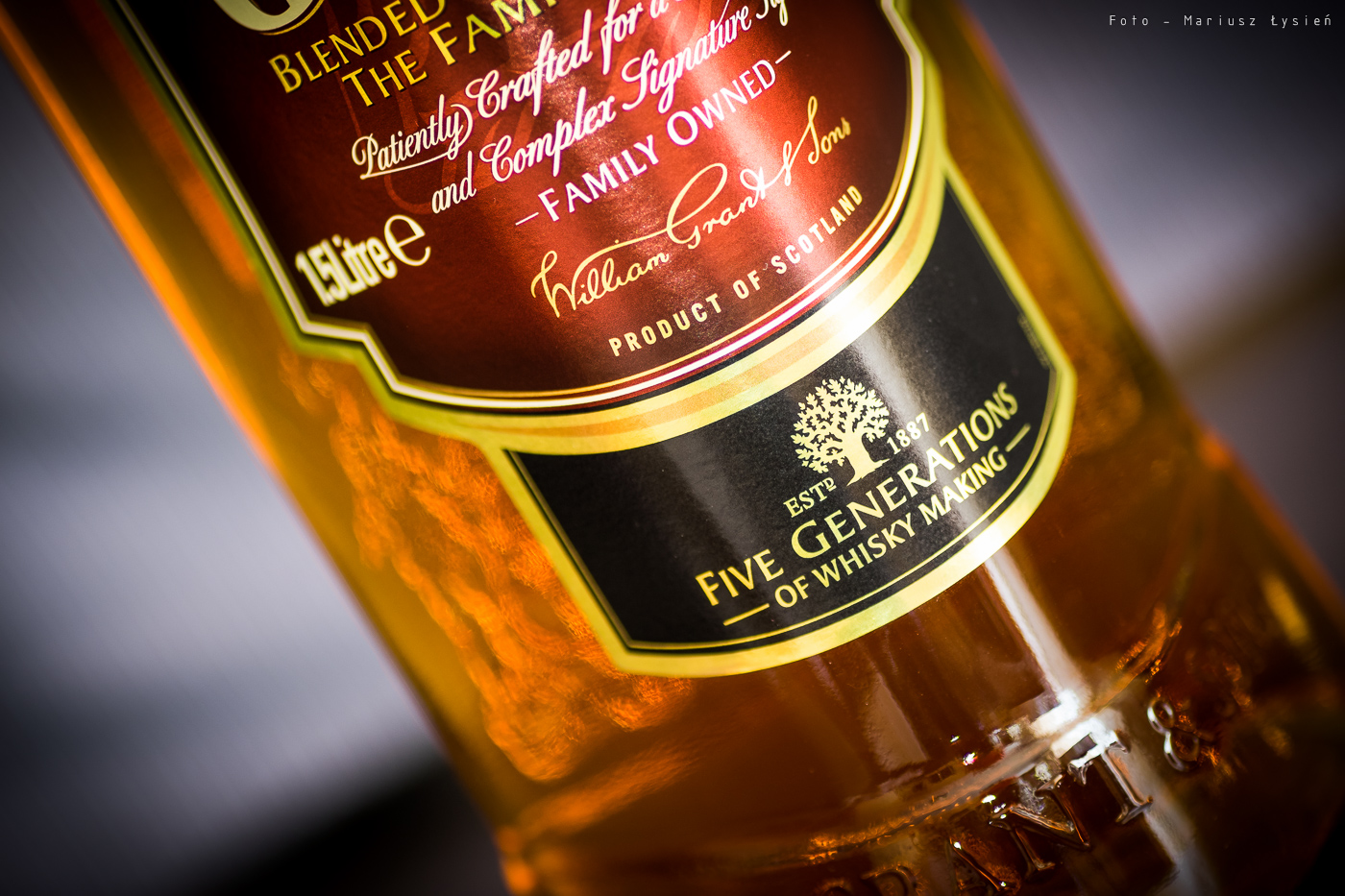 Jest to naprawdę niezły tzw. „blend”, który dodatkowo jest dostępny w bardzo atrakcyjnej cenie – za butelkę 1,5L zapłaciłem 79,99zł. Cena była promocyjna, aczkolwiek nawet i bez tego można go zakupić po niewygórowanej cenie. Na butelce znajdują się liczne odniesienia do destylarni Glenfiddich powszechnie znanej w świecie whisky single malt. Data 1887, logo Glenfiddich na przedniej etykiecie, czy też analogiczna adnotacja przytłoczona w szkle na tyle butelki, daje jasne podejrzenie skąd brana jest baza destylatów używanych do tworzenia Family Reserve. W swojej cenie jest naprawdę ciekawą propozycją, którą mogę polecić, gdyż w kategorii blended whisky wypada całkiem dobrze. Oczywiście nasuwa się pytanie „jak ten trunek ma się do Glenfiddich 12yo?”, którego to notkę smakową możecie odnaleźć od dłuższego czasu na stronie Zegarki i Pióra.