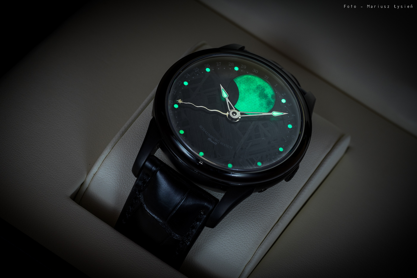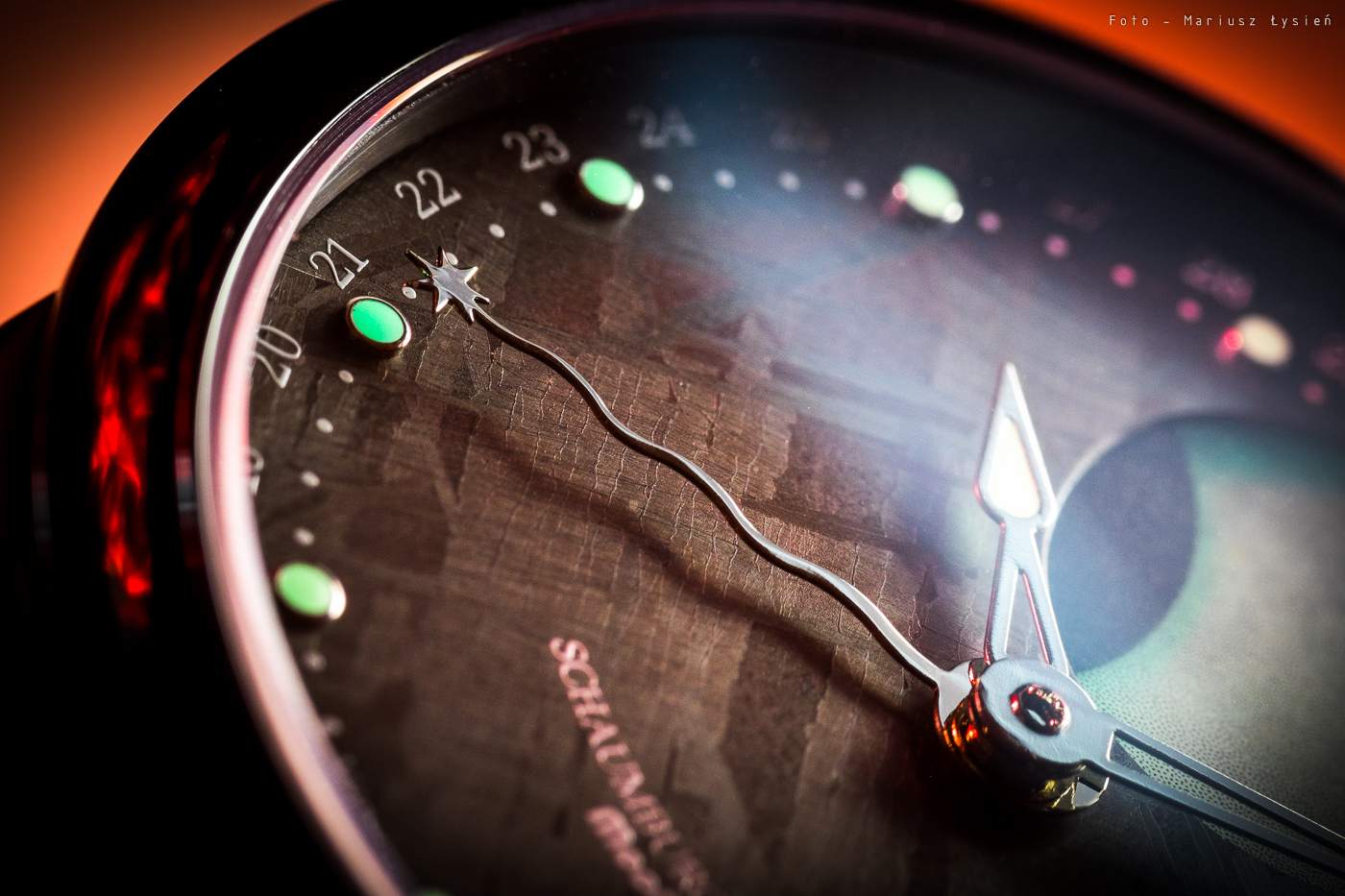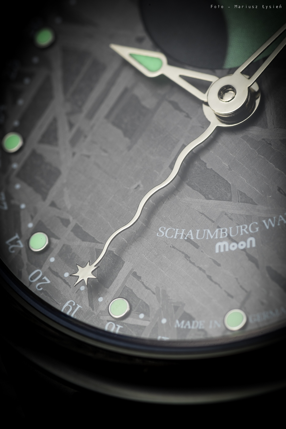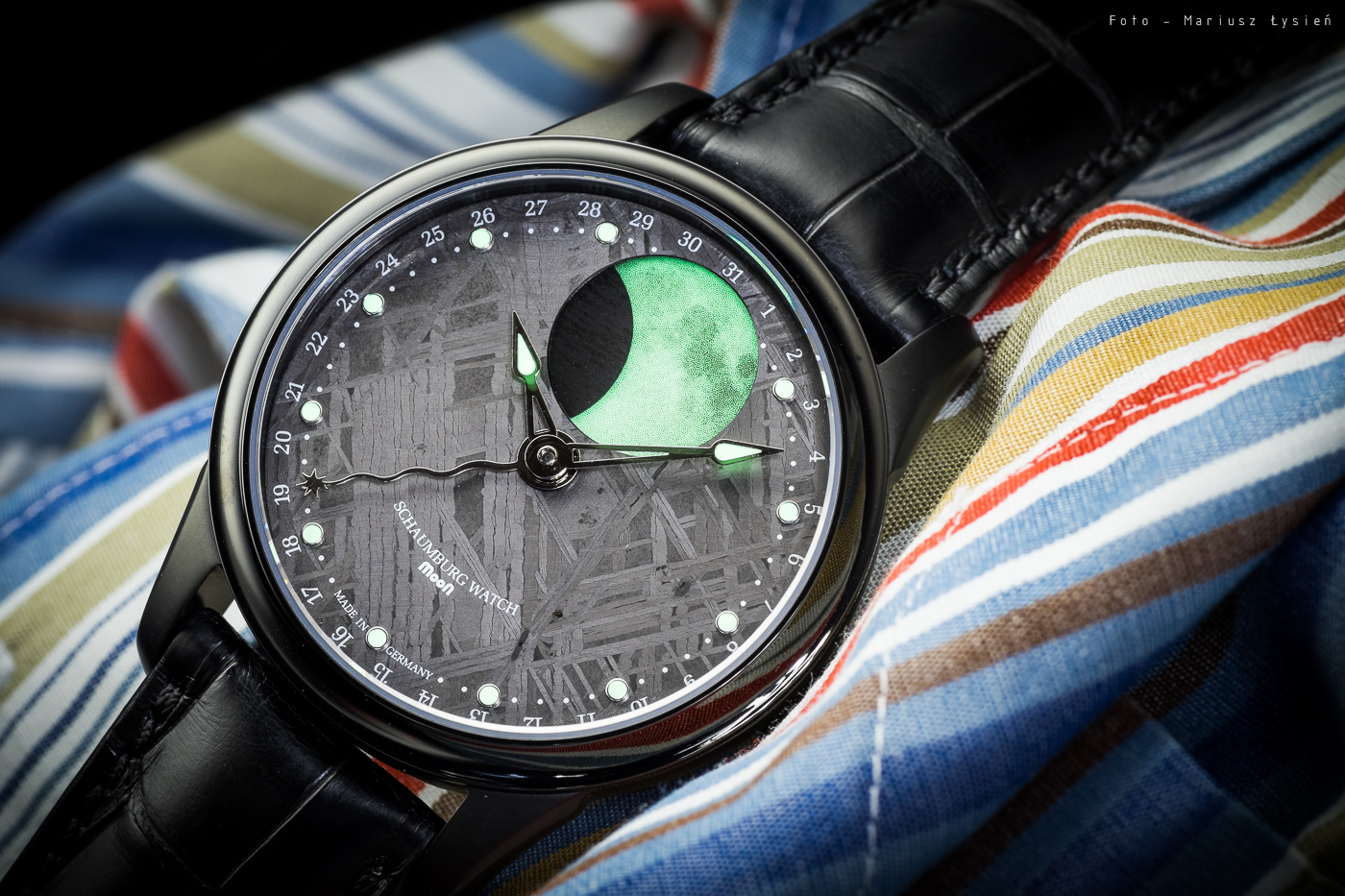 Dziś chciałbym podzielić się z Wami wrażeniami na temat niezwykłego zegarka, którym bez wątpienia jest Schaumburg Moon Meteorite. Pierwszą niezwykłą cechą tego czasomierza jest tarcza, która została wykonana z kawałka meteorytu. Drugą, jest sposób w jaki wyświetlane jest wskazanie faz księżyca. Te i inne elementy odróżniające go od zdecydowanej większości zegarków, które możemy znaleźć na rynku sprawia, że jest to propozycja co najmniej interesująca i warto poświecić jej kilka chwil.