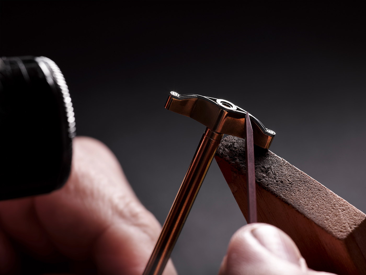 W mechanizmie tym odnajdziemy sporo nietypowych elementów. Pierwszym z nich jest cylindryczna sprężyna widoczna w klatce modułu obiegowego wychwytu a, której istnienie zdradza również nazwa modelu. Jak podkreślają inżynierowie producenta, w porównaniu do konwencjonalnych odpowiedników montowanych w zegarkach naręcznych, sprężyny cylindryczne były montowane w najlepszych jakościowo (a przy tym najdroższych) chronometrach morskich. Od ich jakości zależała w końcu dokładność z jaką można było określić swoje położenie. Co więcej – włos cylindryczny do dziś pozostaje synonimem precyzji. W przeciwieństwie do klasycznej sprężyny, zastosowanie wspomnianego włosa cylindrycznego eliminuje powstawanie niewielkich sił mimośrodowych wynikających ze zmian położenia środka ciężkości, gdyż w tym przypadku wszystkie fragmenty pracują w jednej płaszczyźnie. Niezależnie od korzyści płynących z zastosowania tego rozwiązania, stanowiło ono również wyzwanie dla zegarmistrzów pracujących nad tą konstrukcją. Głównym problemem okazała się kwestia miniaturyzacji elementów, tak by mogły się one pomieścić w kopercie zegarka noszonego na nadgarstku, zamiast w obudowie chronometru morskiego. Dodatkowo sam mostek utrzymujący tourbillon we właściwym położeniu otrzymał wypukłą formę, której kształt ma się komponować z pozostałymi elementami cyferblatu. Wykonanie tego elementu tj. wspomnianego mostka, zajmuje doświadczonemu zegarmistrzowi ponad tydzień pracy.