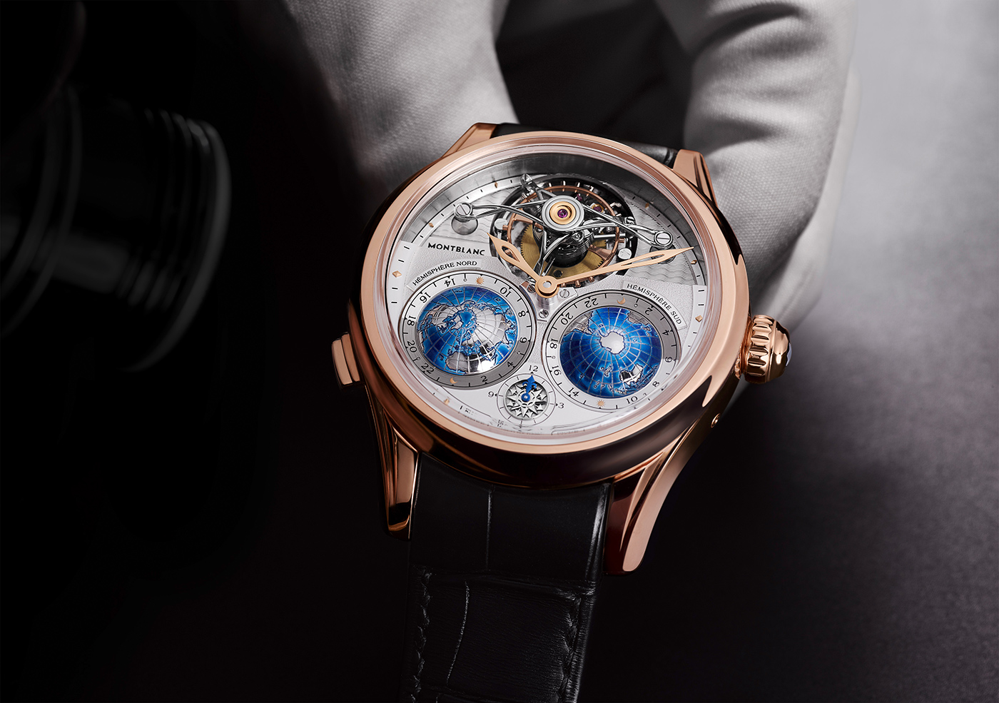 Na godzinie 4 oraz 8 odnajdziemy kolejne nietypowe elementy. Mowa oczywiście o graficznej reprezentacji dwóch półkul Ziemi. Są one ręcznie malowane, oraz połączone z mechanizmem zegarka. Dzięki temu możemy odczytywać czas równolegle w 24 strefach czasowych. Wskazanie to jest uzupełnione o sąsiadującą z półkulami skalę z naniesionym podziałem na dzień i noc.