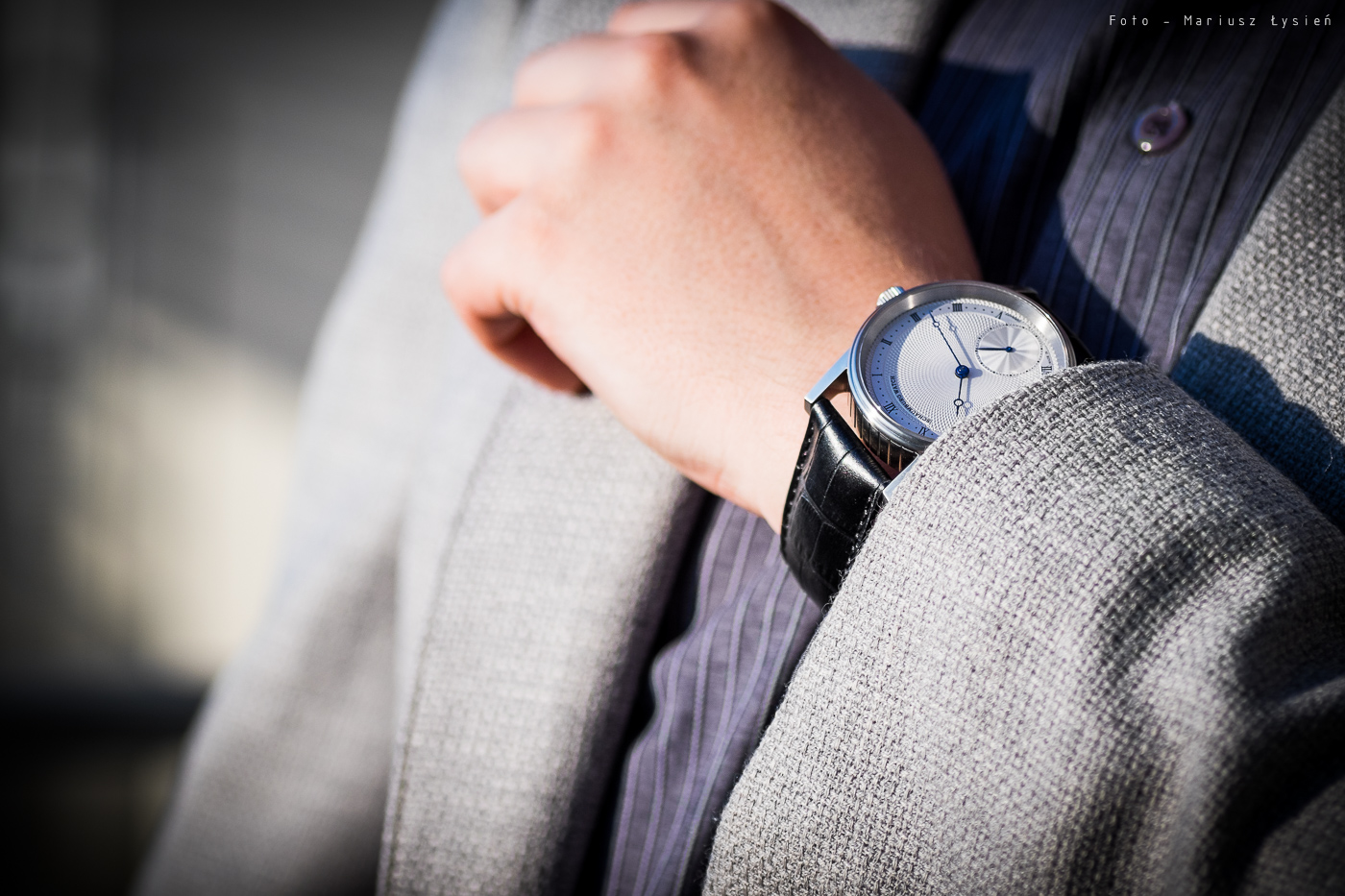 Ponad powierzchnią cyferblatu przesuwają się delikatne wskazówki tzw. „breguetowskie”. Zostały one zabarwione na niebiesko wobec czego bardzo ładnie kontrastują ze srebrzystą powierzchnią tarczy. Całość prezentuje się bardzo elegancko, a zastosowany design daje pewność, że stylistyka czasomierza bez najmniejszego problemu przetrwa próbę czasu.