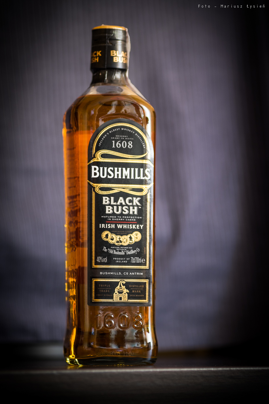 Blended whisky raczej nie cieszą się wielkim poważaniem miłośników whisky single malt. Jednak uczciwie trzeba przyznać, że także wśród tego rodzaju whisky (a właściwie whiskey z uwagi na irlandzkie pochodzenie) można odnaleźć ciekawe i warte uwagi przypadki. W tytułowym Black Bush znajduje się bowiem około 80% whisky słodowej. Automatycznie więc mamy do czynienia z mniejszą ilością wypełniacza gorszej jakości czyli whisky zbożowej (grain whisky). Kolejnym elementem jest tutaj finiszowanie jej nie tylko w beczkach po bourbonie, ale także w beczkach po hiszpańskim oloroso sherry. I to właśnie sherry jest tutaj doskonale wyczuwalne – można powiedzieć, że nie tylko w pewien sposób wygładza smak, ale i w znaczącym stopniu go buduje. Mamy też do czynienia z potrójną destylacją, co jest charakterystyczne dla whiskey irlandzkiej.