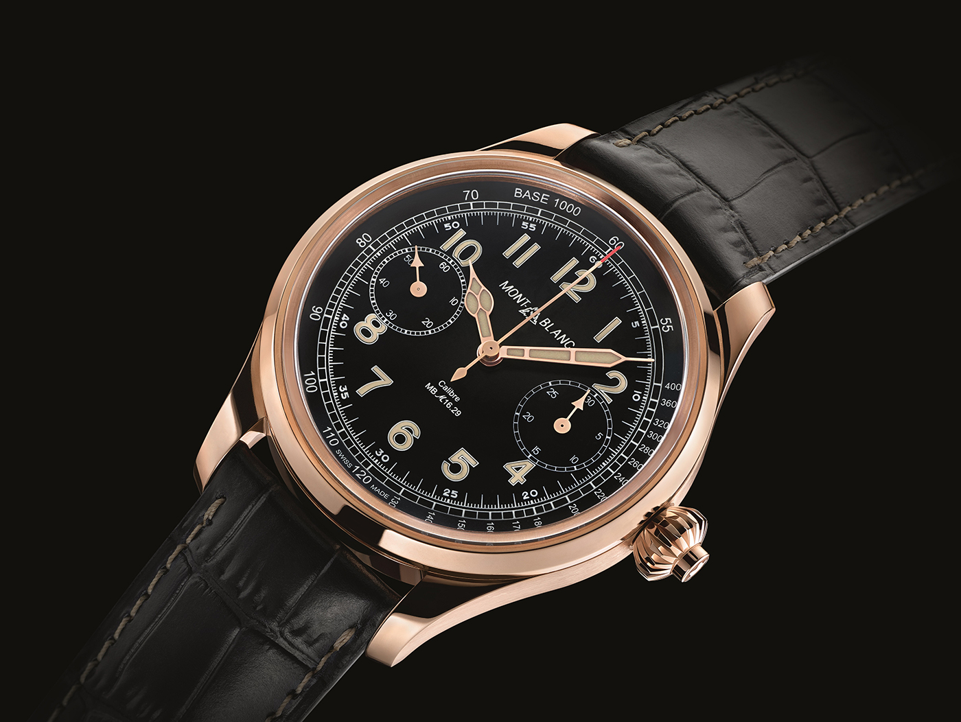 Design cyferblatu nawiązuje bezpośrednio do protoplasty z roku 1930. Obecny model, to pod względem stylistyki swoista reedycja tamtego czasomierza – bardzo udana zresztą. Na czarnej tarczy umieszczono skalę tachymetru, arabskie cyfry indeksów godzinowych (które dodatkowo wypełniono przy pomocy Super LumiNovy), oraz sub-tarczę małej sekundy (na godzinie 9) jak i 30 minutowy totalizator stopera (na godzinie 3). Całość uzupełniono jedynie dawnym logo firmy Montblanc oraz subtelną informacją o rodzaju zamontowanego wewnątrz kalibru. Do elementów „retro”, z pewnością należy zaliczyć szkieletowane oraz wypełnione materiałem luminescencyjnym wskazówki.