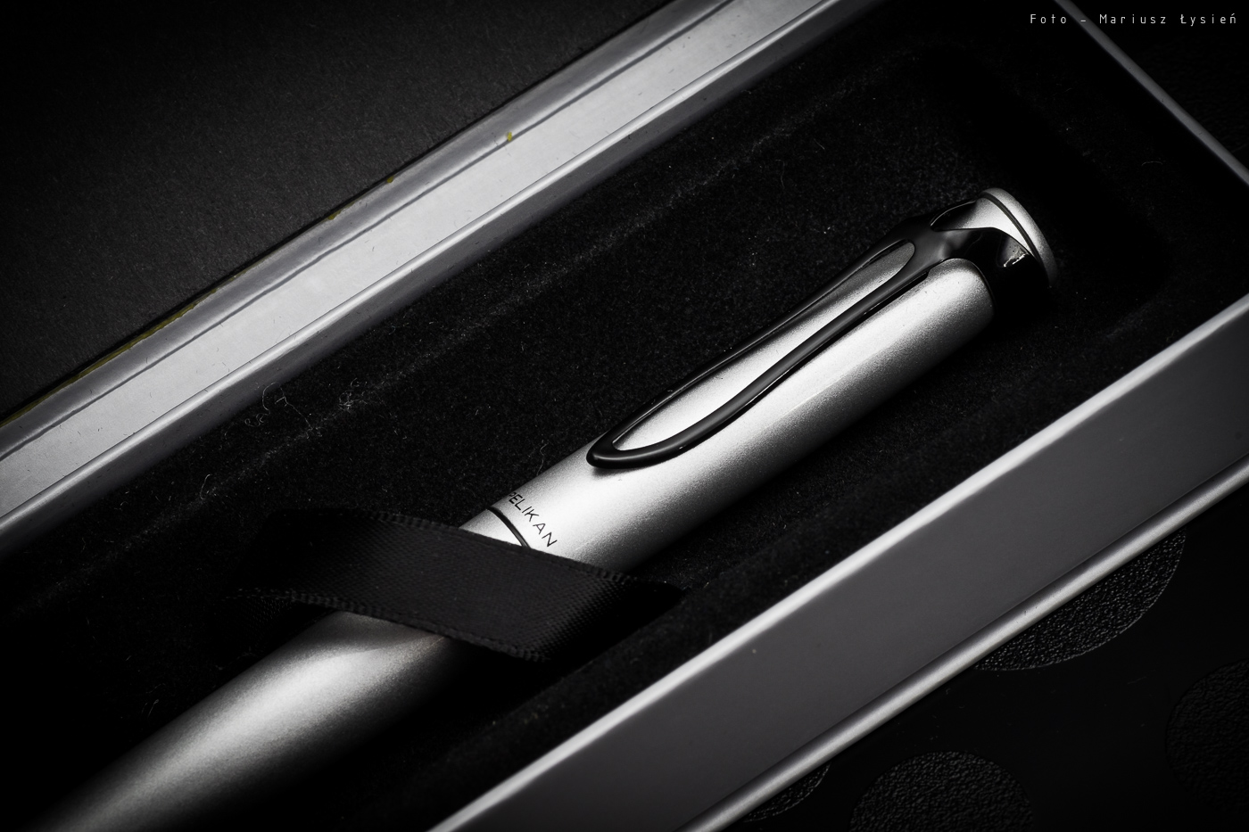 Krótko należy jeszcze wspomnieć o pozostałych elementach zestawu. Pióro kulkowe z zewnątrz jest identyczne jak pióro wieczne. W testowanym roller’rze był zamontowany standardowy wkład firmy Pelikan o kresce szerokości „M”, w kolorze czarnym. Pisanie czy rysowanie tym przyborem należy zdecydowanie do przyjemnych. Narzędzie sunie gładko po powierzchni papieru, dzięki czemu nie mamy uczucia „siłowania się” i możemy skupić się na tym co chcemy napisać bądź narysować. Długopis posiada natomiast klasyczne dla tego typu produktów firmy Pelikan rozwiązanie z obracanymi fragmentami korpusu, tj. aby wysunąć bądź schować wkład, należy przekręcić względem siebie dwie, nazwijmy to „połówki” długopisu. Sam kształt tego narzędzia minimalnie odbiega od pozostałych, gdyż długopis jest nieco szerszy w miejscu, w którym go trzymamy podczas pisania. Jeżeli chodzi o właściwości piśmiennicze, to trudno napisać coś więcej, aniżeli, że są to standardowe odczucia jak w każdym innym długopisie dobrej jakości, dlatego polecam w jego miejsce roller, a przede wszystkim pióro wieczne. Cały zestaw stanowi także ciekawą alternatywę, która daje szerokie możliwości (np. długopis do adresowania przesyłek i wypełniania druków samokopiujących, roller do szkicowania, a pióro do notowania i podpisywania dokumentów). Zestaw zdecydowanie sprawdzi się również jako prezent.