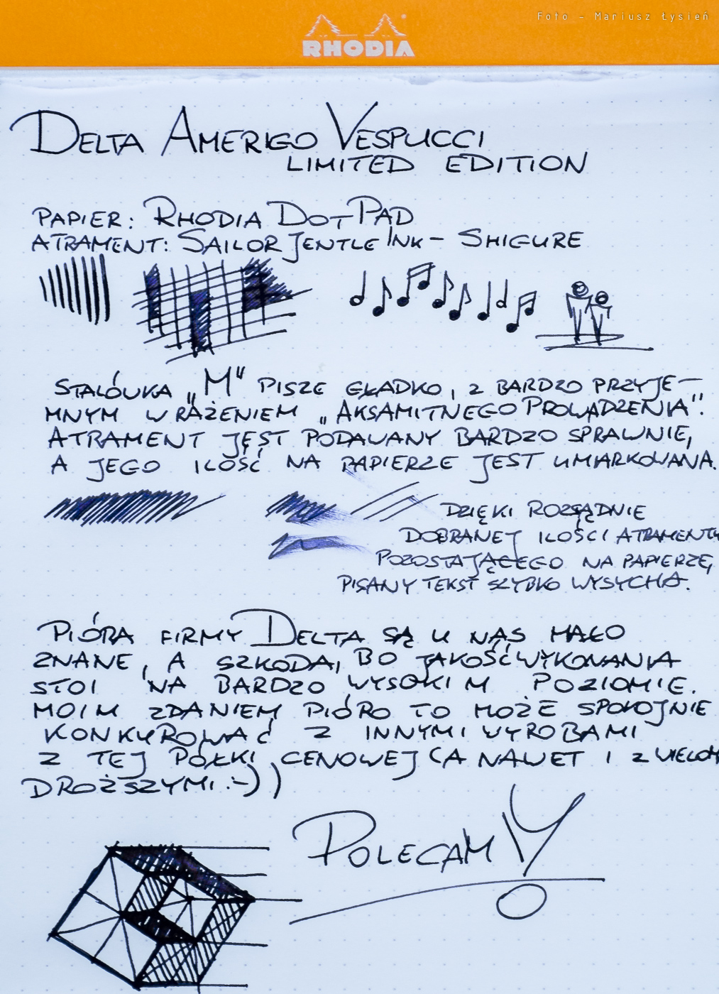 Podziękowania dla firmy INNER – TOMAR S. C. będącej dystrybutorem marki Delta za dostarczenie pióra do testu.