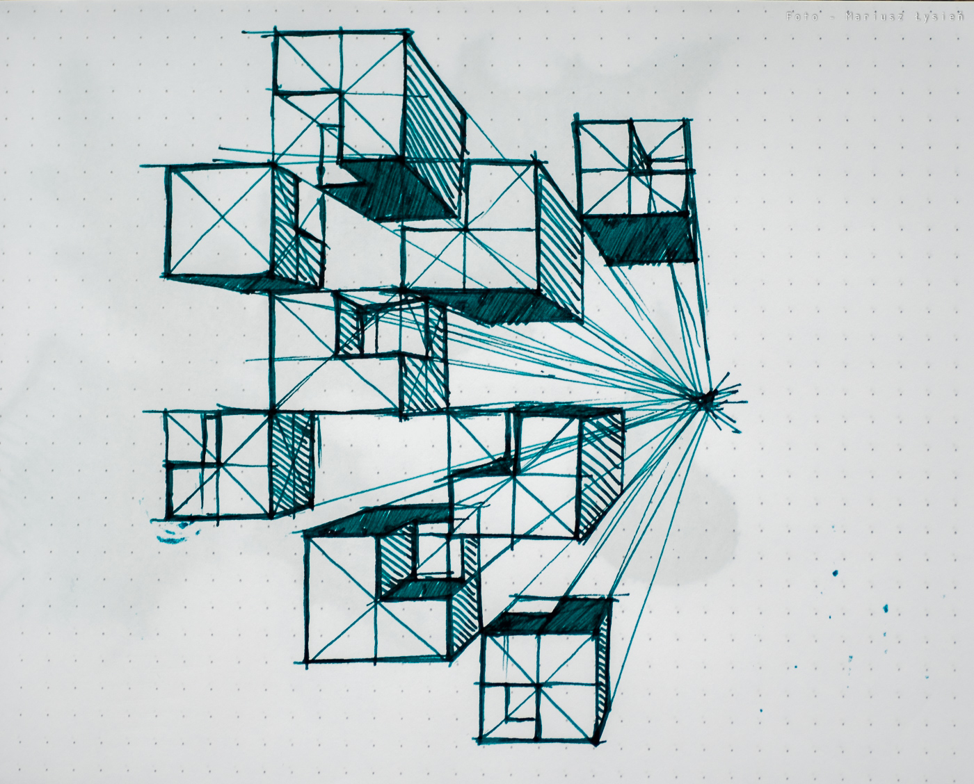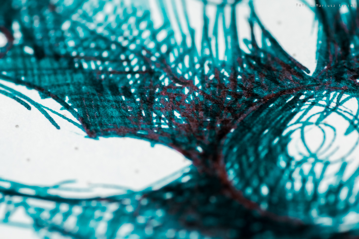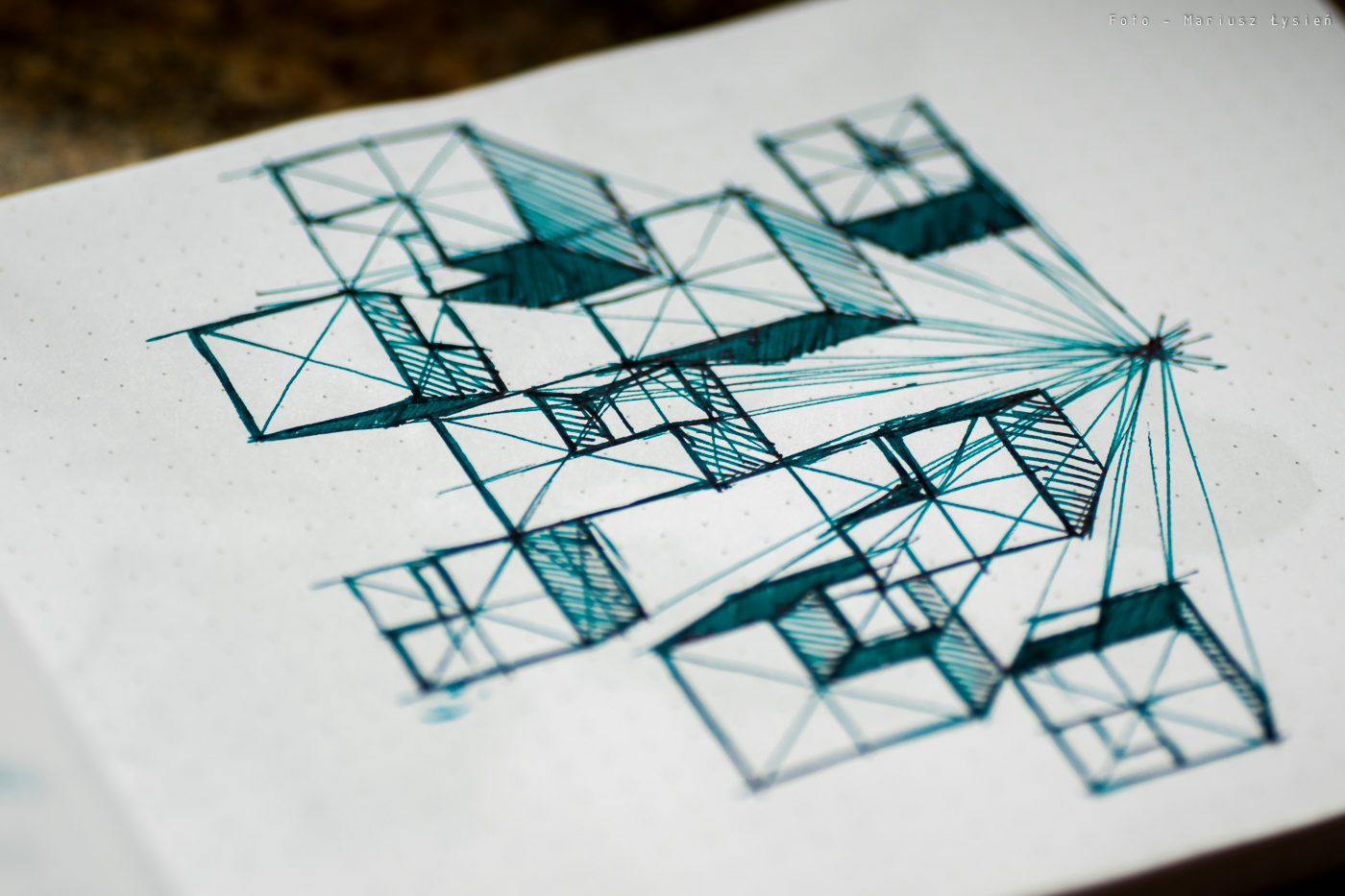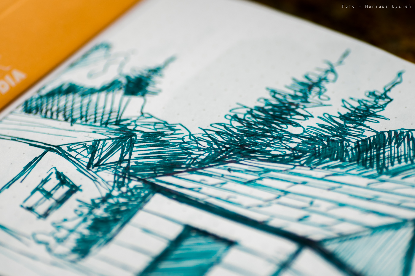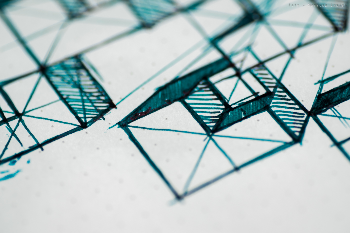O strzępieniu czy przebijaniu nie ma mowy. Nawet przy szkicowaniu trudno jest sprawić, aby cokolwiek przebiło na drugą stronę. Czas wysychania jest raczej długi. Na satysfakcjonujący rezultat musimy poczekać około 15 sekund. Co jednak atrament oferuje w zamian? Na pewno piękne cieniowanie. Nawet w wykonanej ze stali stalówce Kaweco, widać jak wiele elementów liter nie tylko ma zróżnicowane nasycenie, ale i posiada wspomniany połysk.