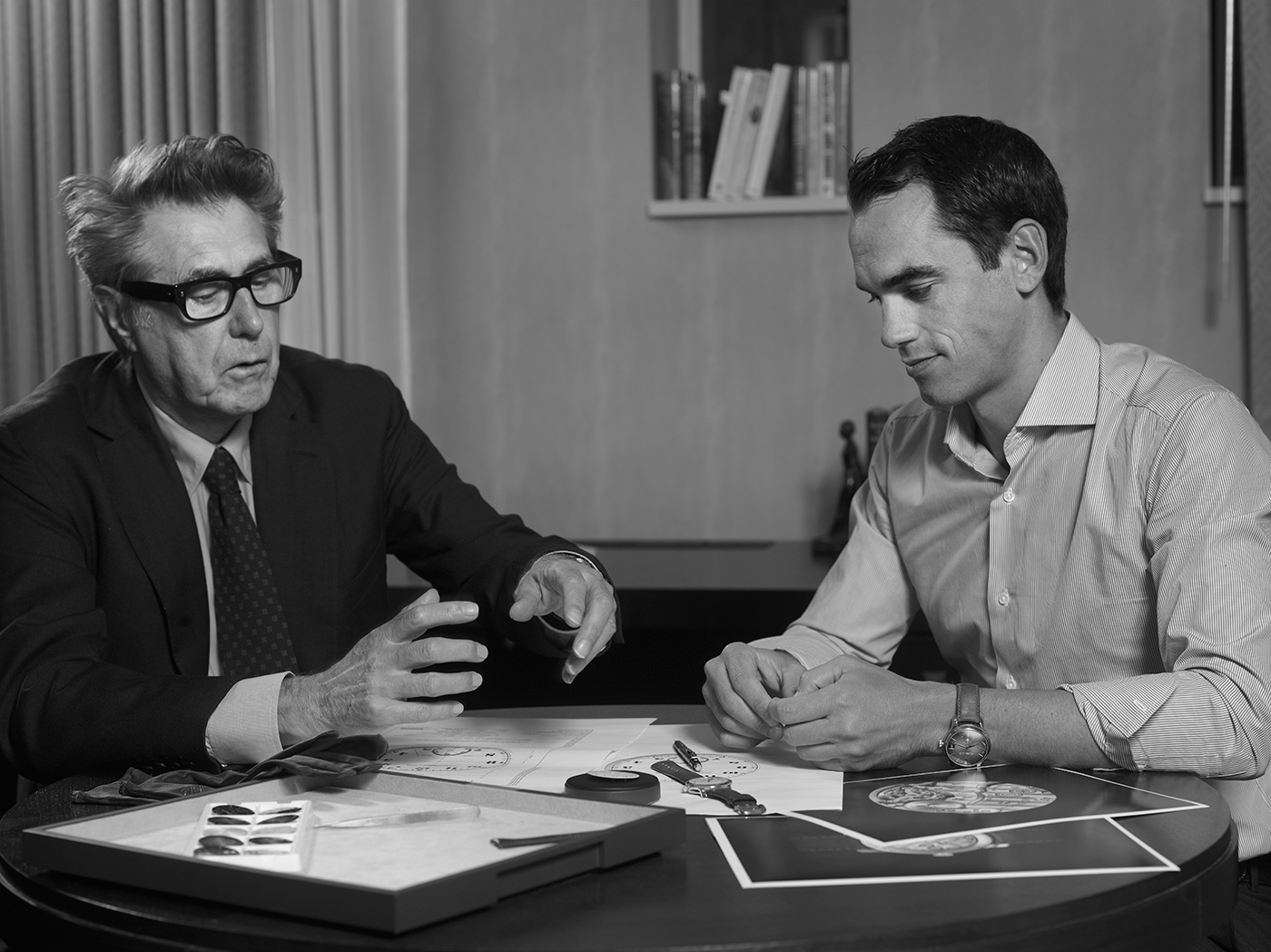 Model bazuje na kolekcji Endeavour. O ile wariant ten będzie posiadał tzw. „małą sekundę” na godzinie 6, to o tyle stylistyka tarczy mocno odbiega od aktualnych wzorców z którymi kojarzymy wyroby tej zacnej manufaktury. Przede wszystkim tarcza jest niezwykle klasyczna i nie będzie to przesada, jeżeli jej wzór skojarzy nam się z zegarkami kieszonkowymi. Nawiązuje ona bowiem do historycznych „kieszonek” produkowanych przez tę manufakturę. Na jej białej, matowej powierzchni umieszczono jedynie subtelną podziałkę minutową oraz klasyczne w kroju arabskie cyfry indeksów godzinowych. Poza nimi odnajdziemy jedynie logo producenta oraz sub-tarczę sekundnika na godzinie 6. Cyfry „6” i „12” oraz napis „Bryan Ferry” wyróżniono kolorem czerwonym. Charakter retro pogłębiają z pewnością klasyczne I barwione na niebiesko wskazówki.