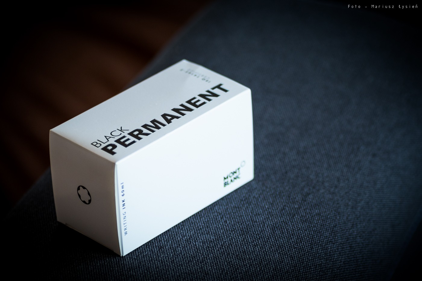 Cechą charakterystyczną opakowań dla atramentów permanentnych firmy Montblanc jest ich biały kolor. Na powierzchni znajdziemy jedynie tekstowe oznaczanie koloru wraz z dużym napisem „PERMANENT”.