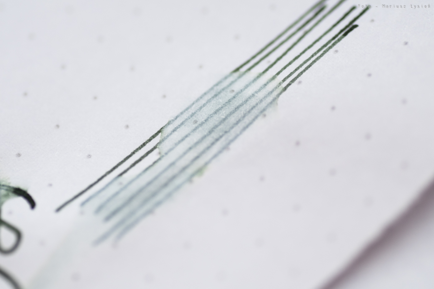 Cieniowanie nie jest może wybitnie mocne, niemniej jest ono dobre. Zresztą atramenty o ciemniejszych kolorach mają to do siebie, że cieniowanie często jest w nich częściowo ograniczone właśnie przez ciemny kolor.