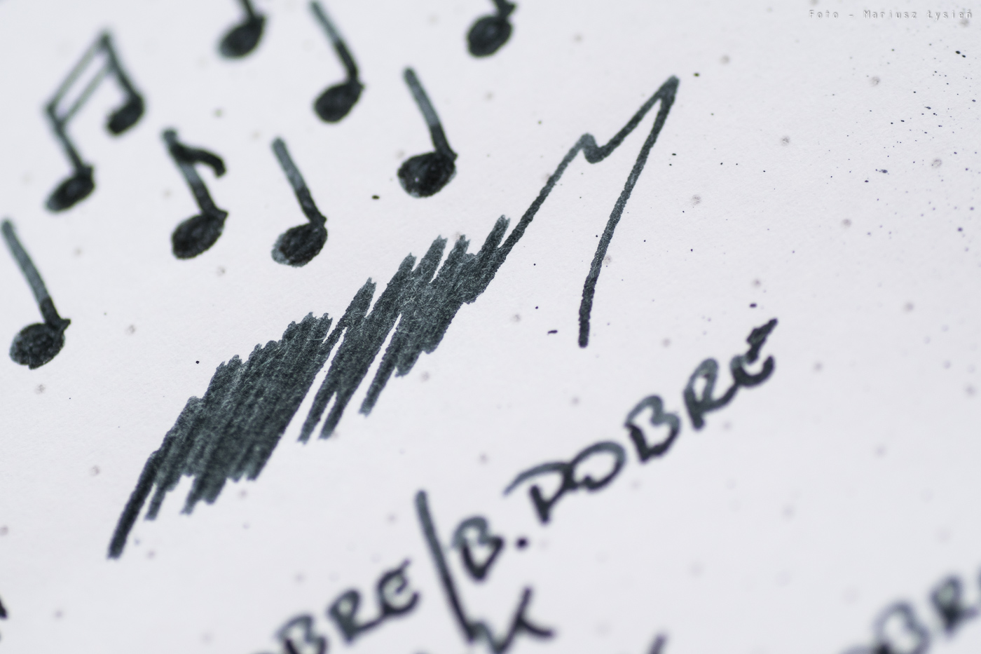 Dlaczego zmieniłem zdanie? Otóż już od pierwszego przytknięcia stalówki „B” pióra Kaweco Sport daje się wyczuć doskonały przepływ i świetne nawilżenie stalówki. Pióro prowadzi się po papierze jak po aksamicie. Podobnie ma się sprawa z bardzo dobrym cieniowaniem. Kolor to taka wypadkowa pomiędzy niebieskim i szarym. Można też pokusić się o stwierdzenie, że jest to taki „szary blue-black”.
