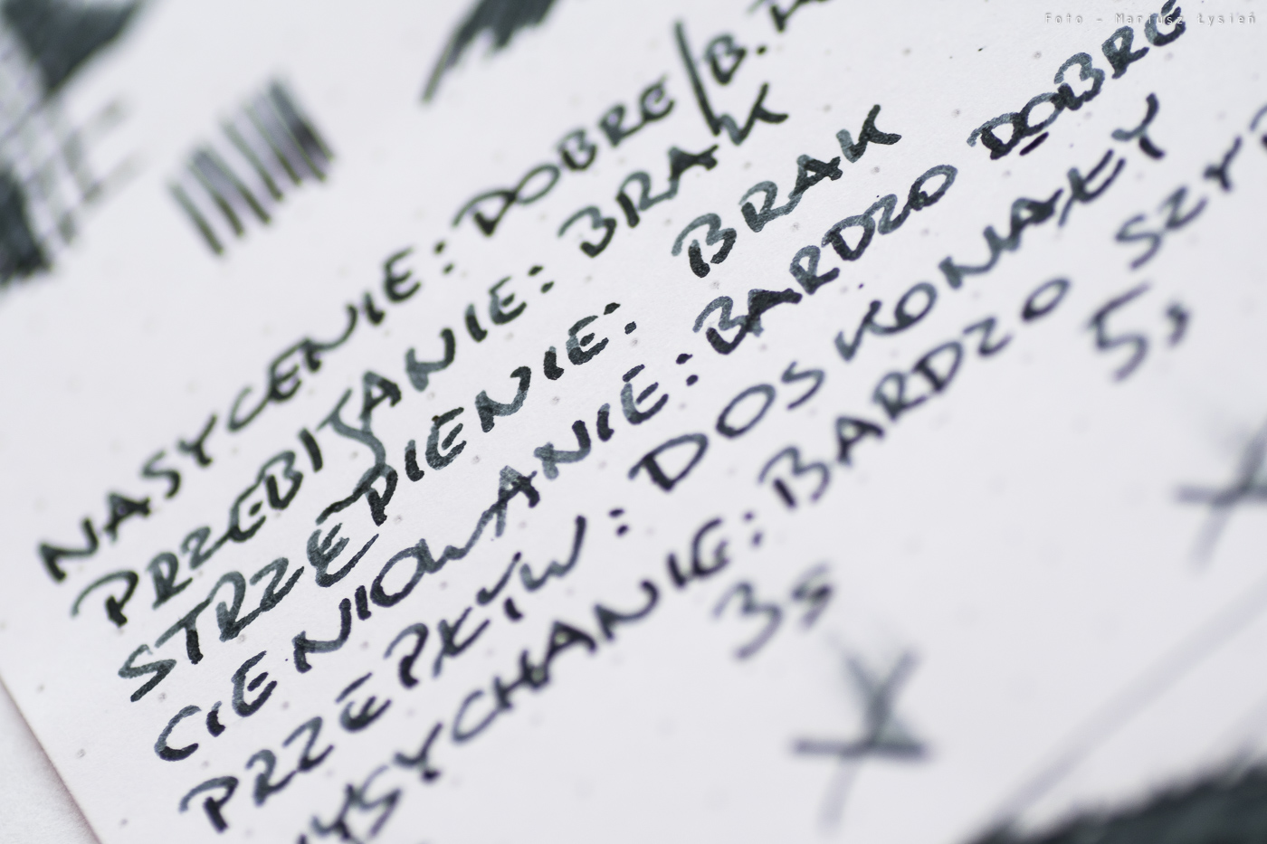 Chciałem podziękować użytkownikowi Visvamitra z Forum o Piórach za udostępnienie próbki tego atramentu.