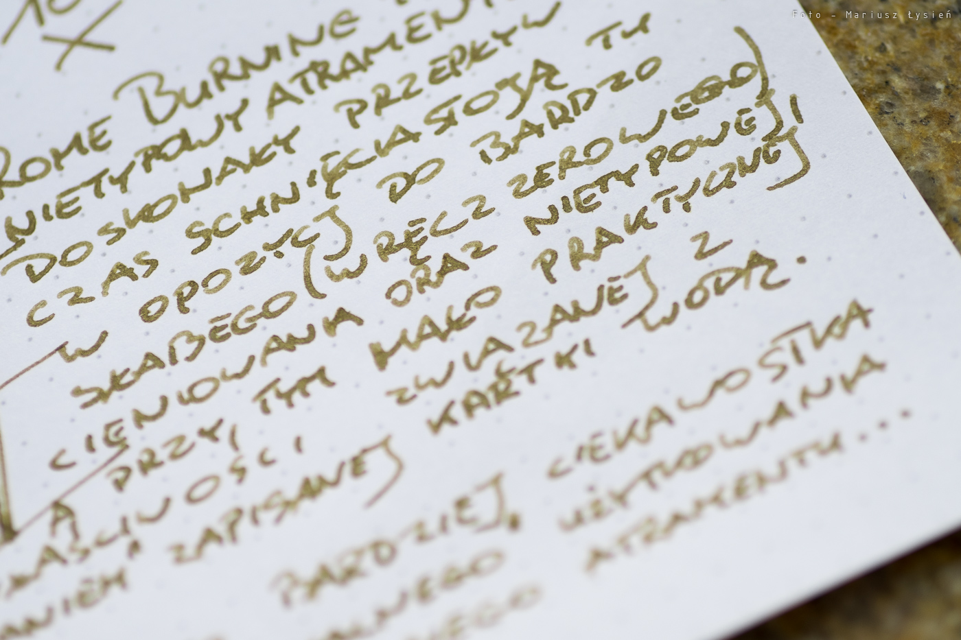 Chciałem podziękować użytkownikowi Visvamitra z Forum o Piórach za udostępnienie próbki tego atramentu.