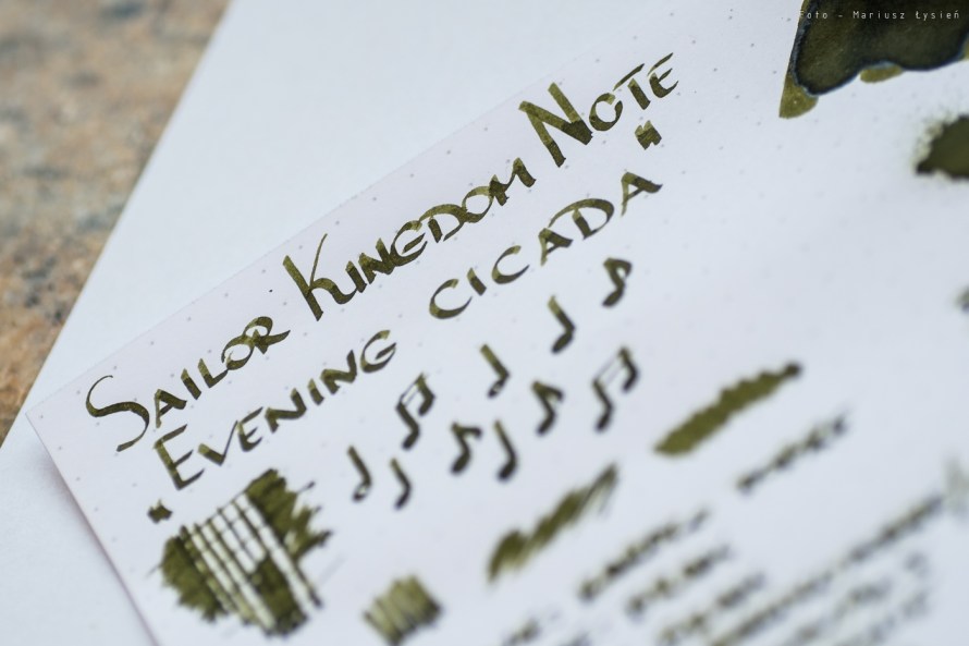 Ostatnio w dziale testy panuje „sezon” na zielone atramenty. Także i w tym przypadku, po otrzymaniu próbki nie mogłem się oprzeć pokusie wypróbowania tego inkaustu. Atramenty z serii Kingdom Note należą zresztą do jednych z najtrudniej dostępnych atramentów firmy Sailor.