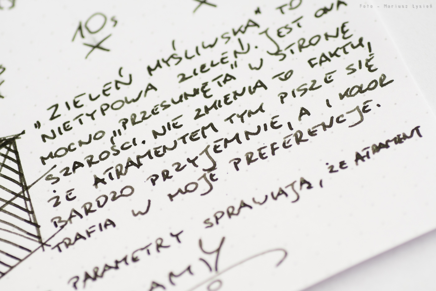 Na naszym krajowym rynku od pewnego już czasu działa firma KWZ Ink, która oferuje całkiem bogatą paletę atramentów przeznaczonych do używania ich w piórach wiecznych. Cykl testów postanowiłem rozpocząć od inkaustu z zielenią w nazwie, chociaż zieleń ta nie jest tak oczywista jak mogło by się wydawać.