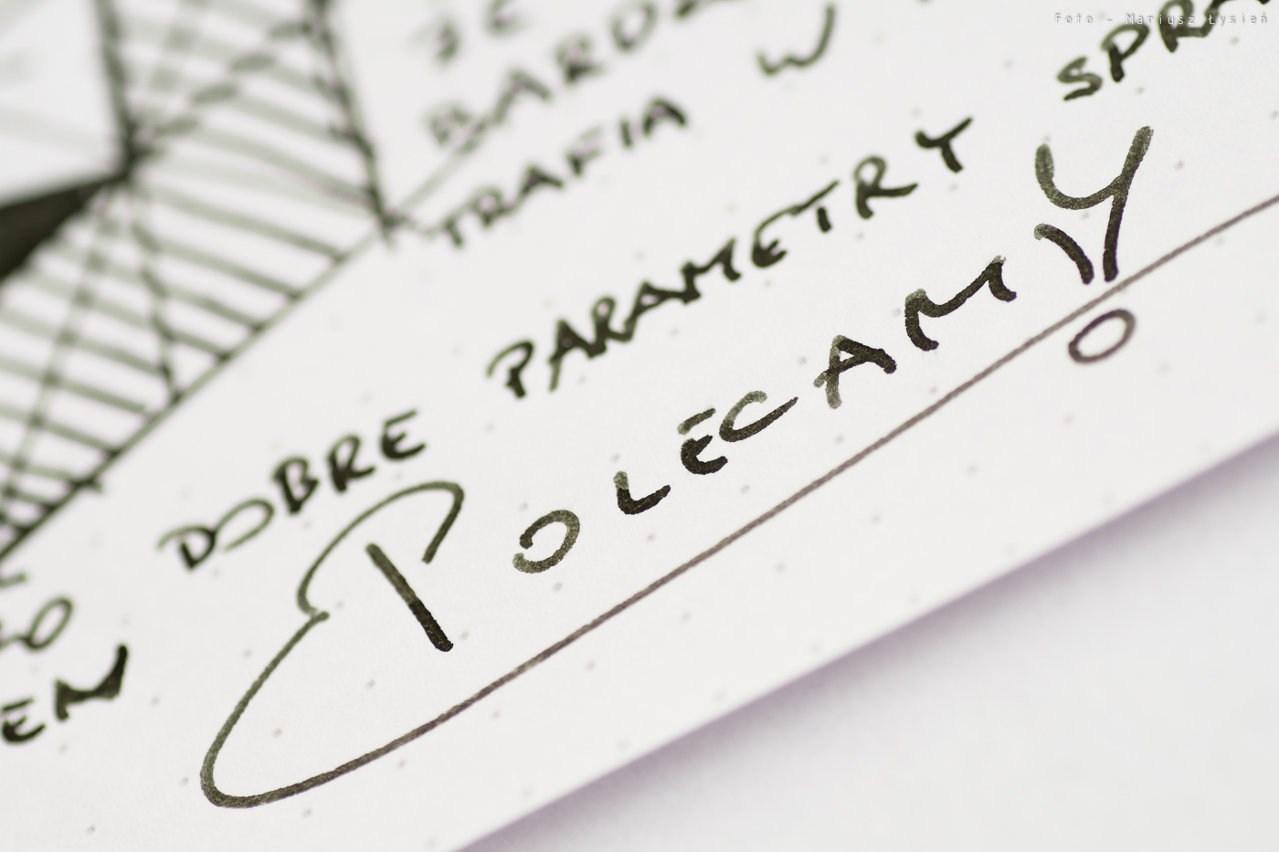 Atrament polecam wszystkim osobom, które szukają inkaustu o takiej barwie, a którym nie zależy specjalnie na wodoodporności. Mnie kolor się spodobał więc polecam. Co więcej, poza wodoodpornością, atrament ten ma bardzo dobre parametry, którymi może spokojnie konkurować z wyrobami innych firm.