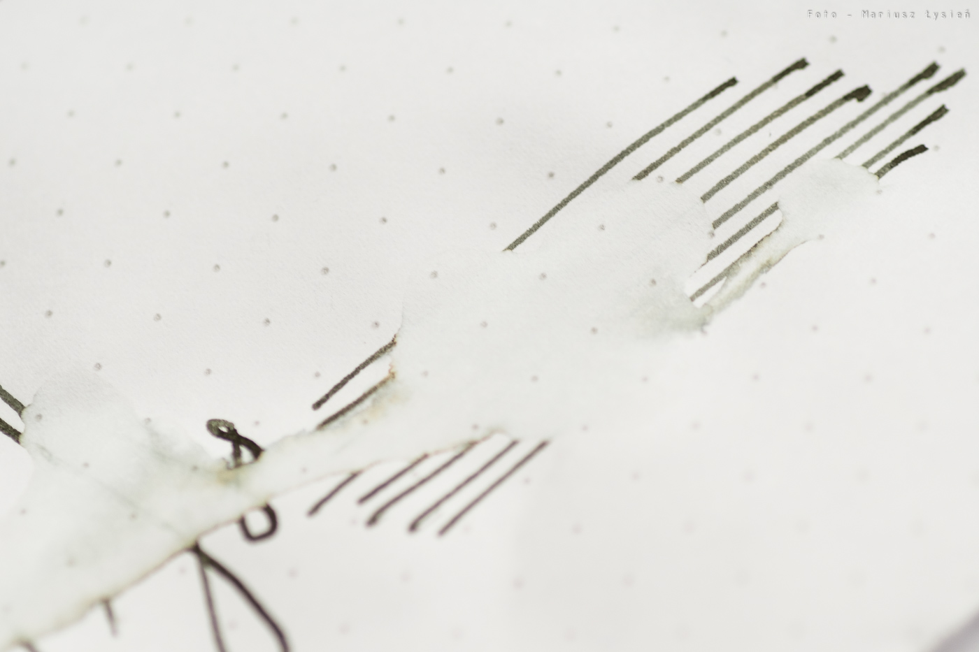 Tak naprawdę zastrzeżenia można mieć jedynie do wodoodporności, która jest bardzo słaba. Widać, że w wielu miejscach atrament został kompletnie wypłukany i trudno nawet powiedzieć, co było w danym miejscu (widoczne jest to zwłaszcza w przypadku horyzontalnie nakreślonych linii).