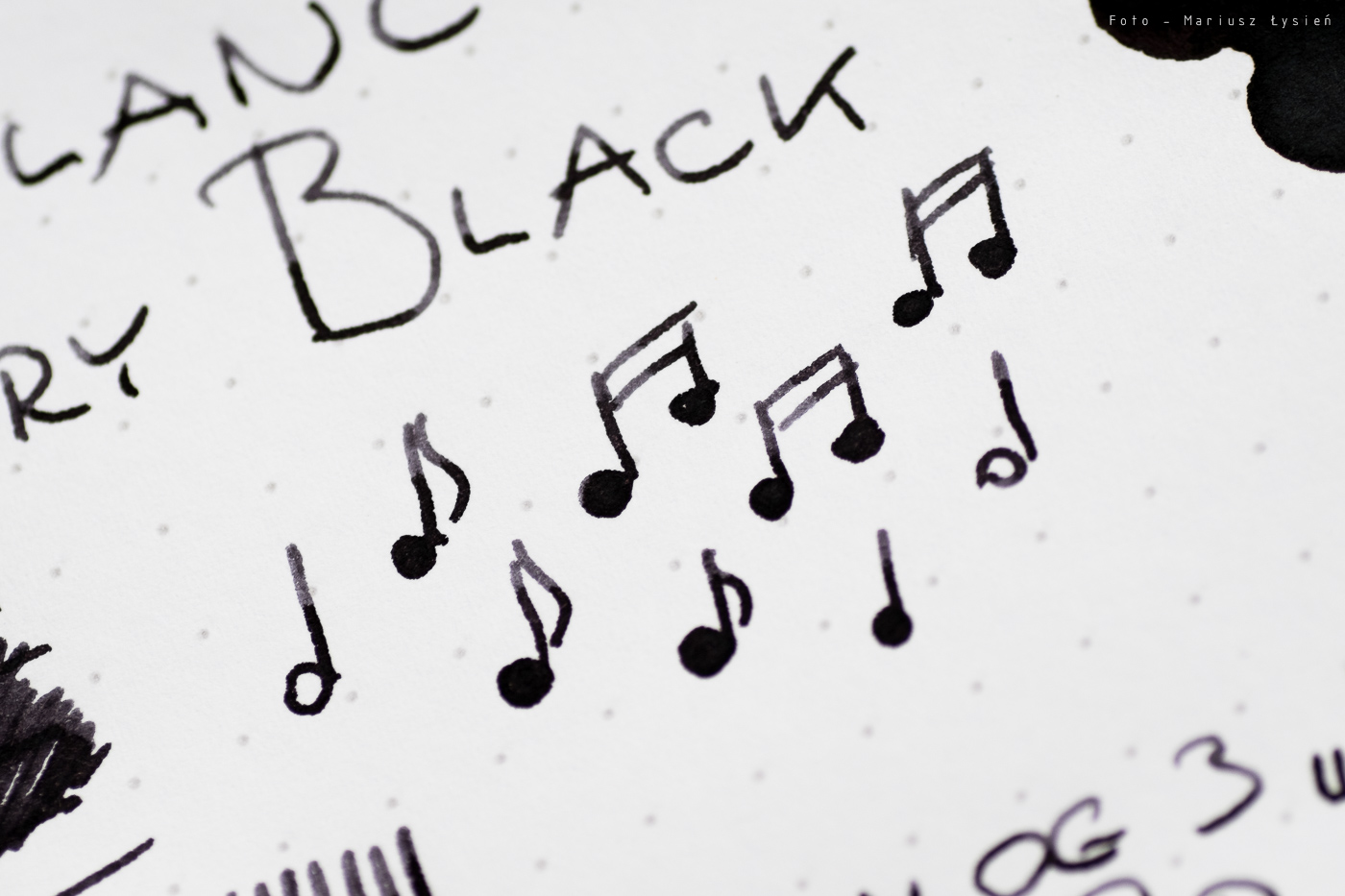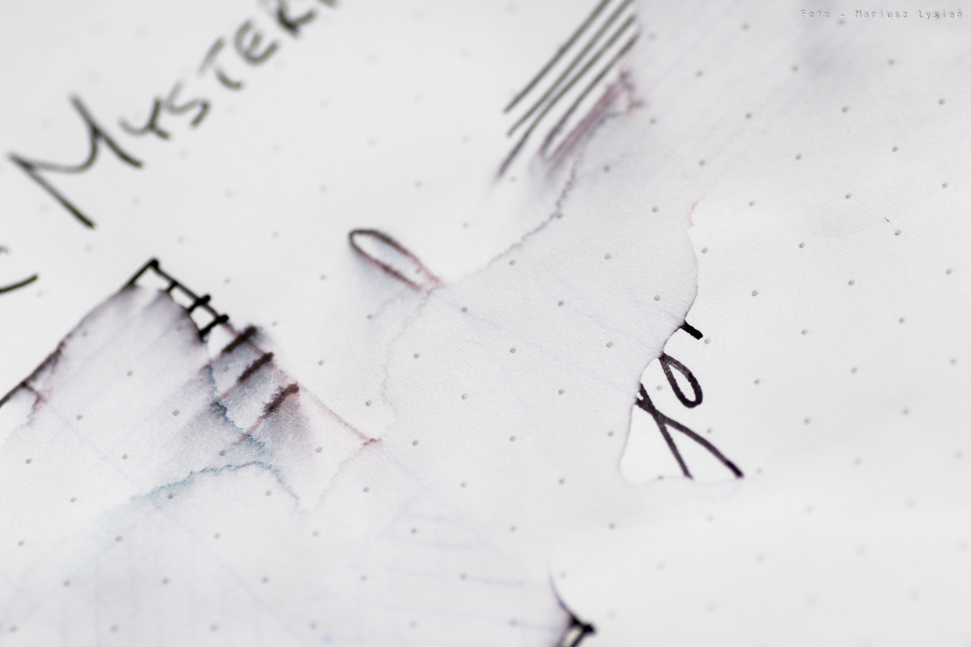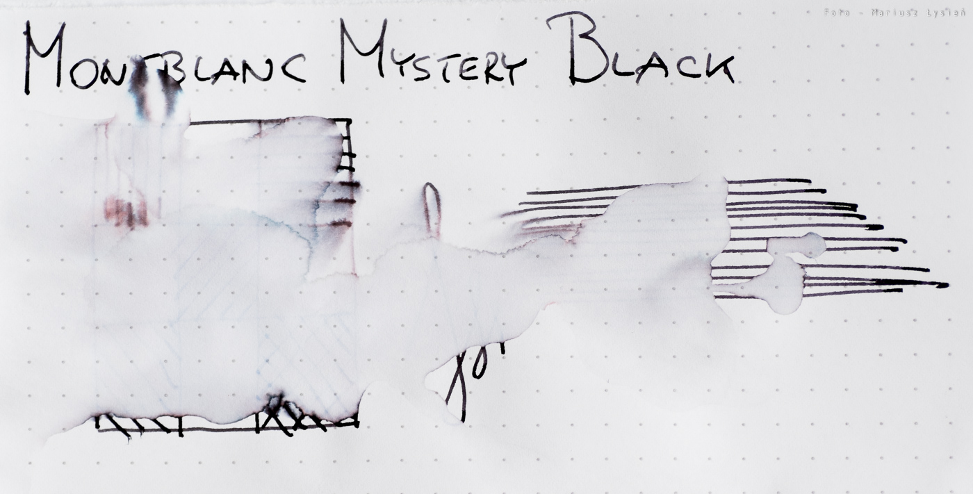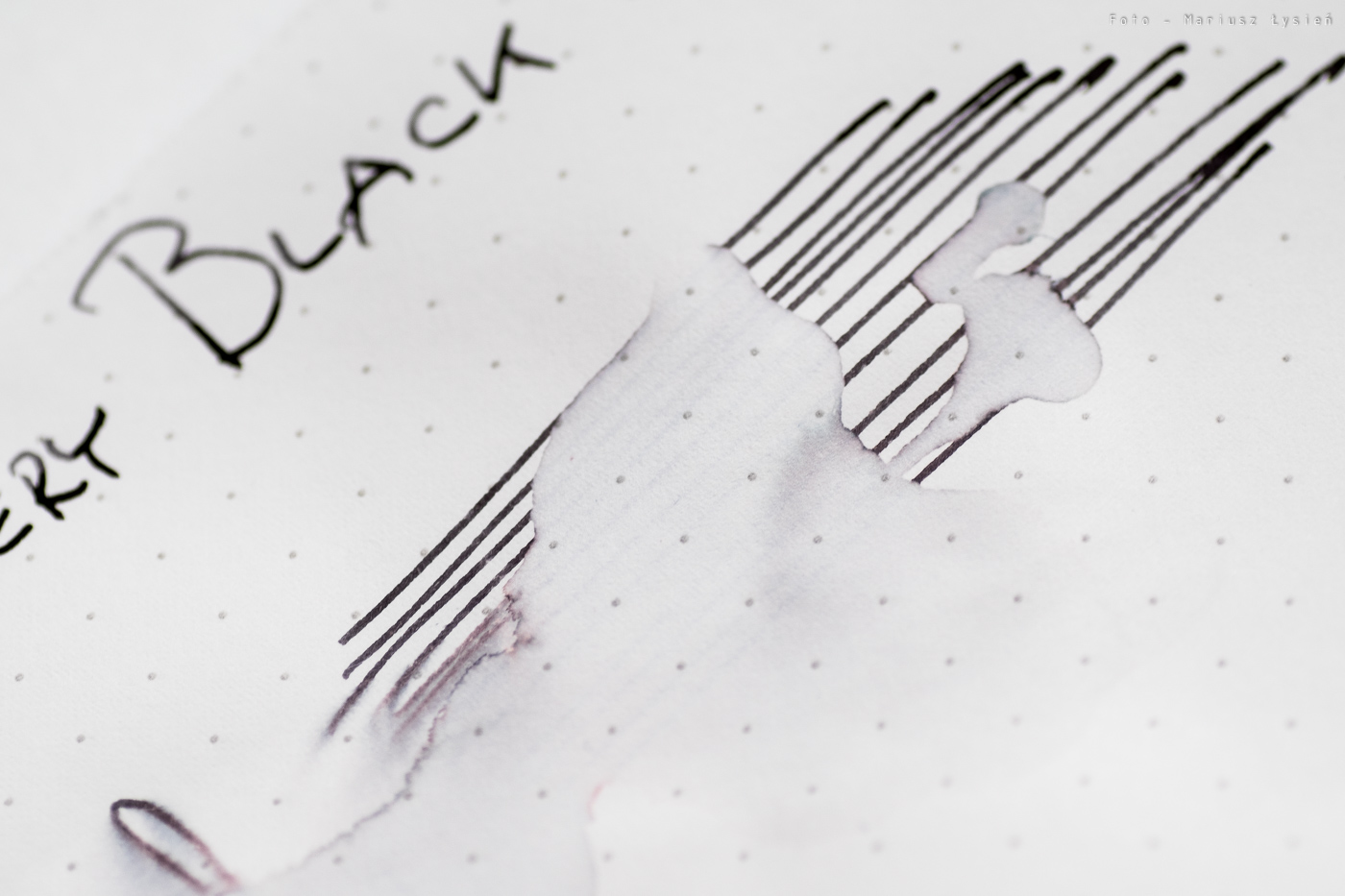 Tytułowy atrament uchodzi za jeden z najczarniejszych atramentów na rynku. Faktycznie nasycenie jest bardzo dobre, a sam kolor nie ujawnia śladów domieszek innych barw. Dzięki temu to co ma być czarne, jest takie w rzeczywistości.