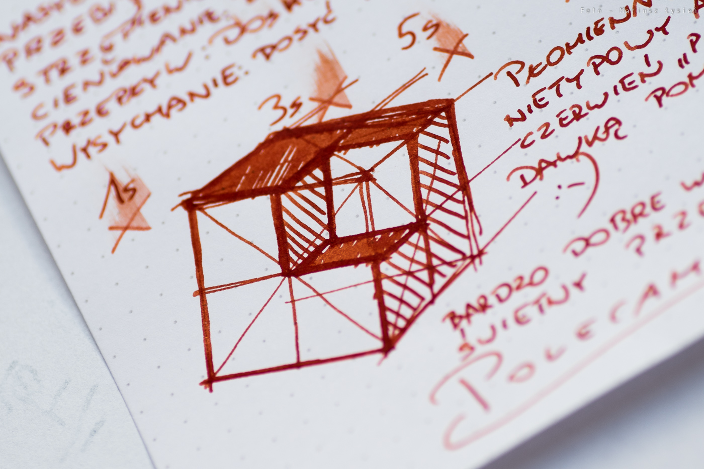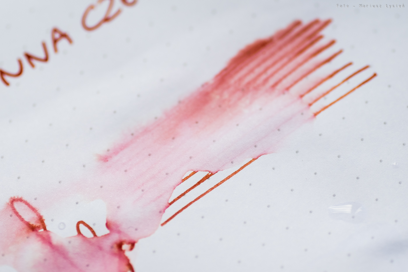 Cieniowanie oceniłem jako dobre, ale cieniowanie to coś na czym poległ już niejeden czerwony atrament. W tym przypadku ocena „dobre” jest zasłużona i faktycznie jak na inkausty z tej palety to jest naprawdę dobrze.