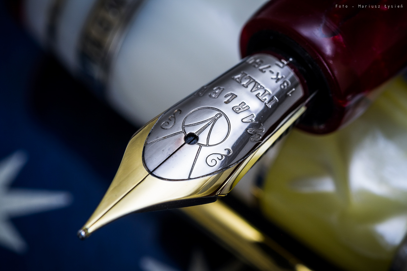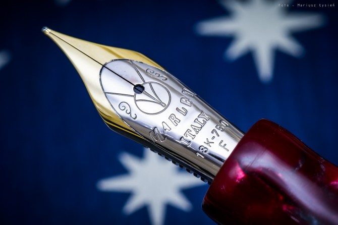 Jeżeli chodzi o walory funkcjonalne to należy je ocenić wysoko. Pióro wygodnie leży w dłoni i pomimo znacznej wagi jest dobrze wyważone oraz nie męczy specjalnie ręki. Także doskonałej jakości stalówka wykonana z 18K złota przekłada się na powyższą ocenę. Sunie ona gładko po papierze z cichym szelestem. Obiektywnie muszę stwierdzić, że jest ona doskonale wykonana i firma Marlen pod tym względem śmiało może konkurować z dowolnym innym producentem piór wiecznych. Stalówka oferuje pewną możliwość wpływania na szerokość linii, jednak nie jest to zmiana szczególnie znacząca. Atrament jest podawany bardzo sprawnie, nawet przy szybkich ruchach stalówki po powierzchni papieru.