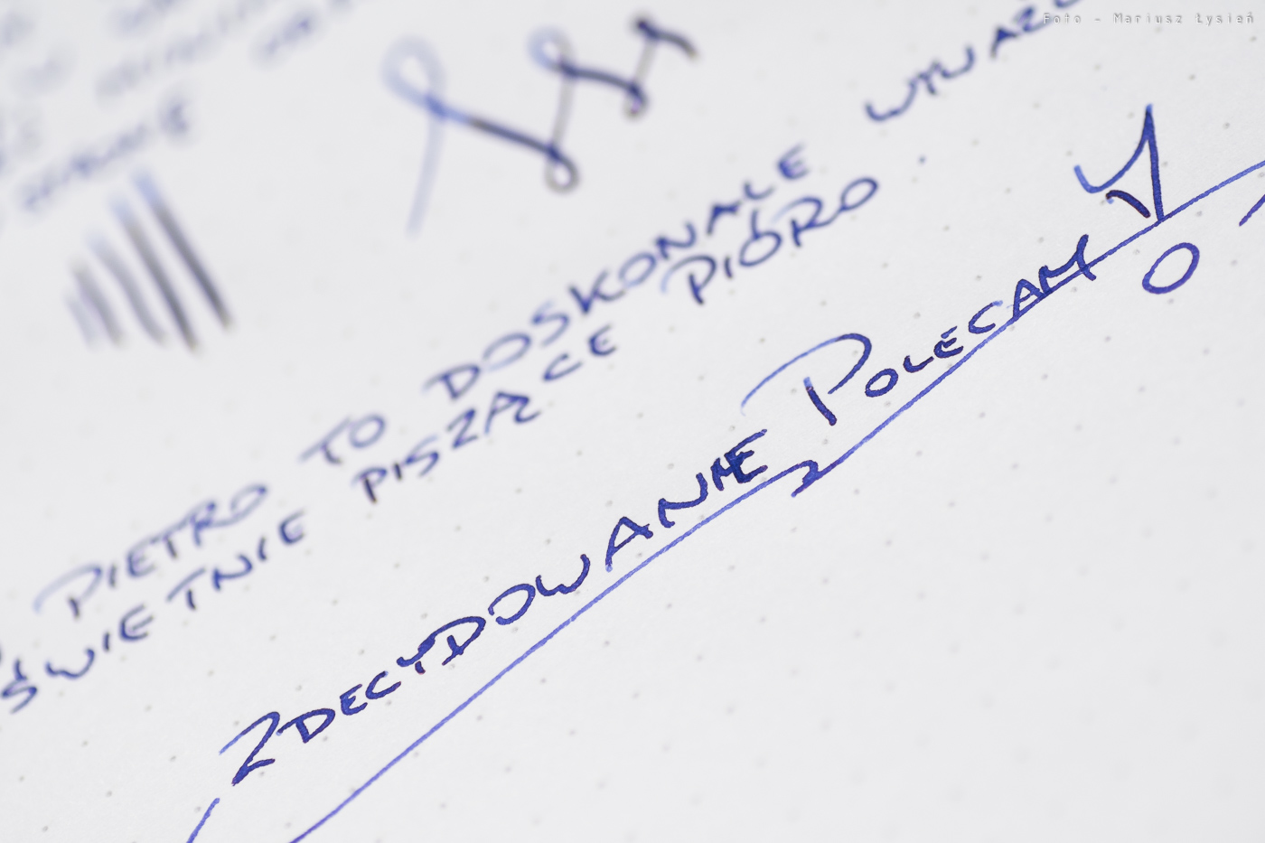 Pióro to jest przykładem wyrobu doskonale zaprojektowanego oraz wykonanego. Jeżeli tylko fundusze na to pozwalają, to szczerze polecam to pióro, gdyż nie tylko cieszy ono oko, ale i doskonale pisze.