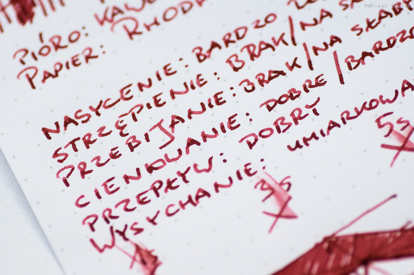 Cieniowanie jest dobre, a wręcz bardzo dobre jak na czerwone atramenty, które raczej nie słyną z tego parametru. Tutaj jest jednak naprawdę dobrze pod tym względem.