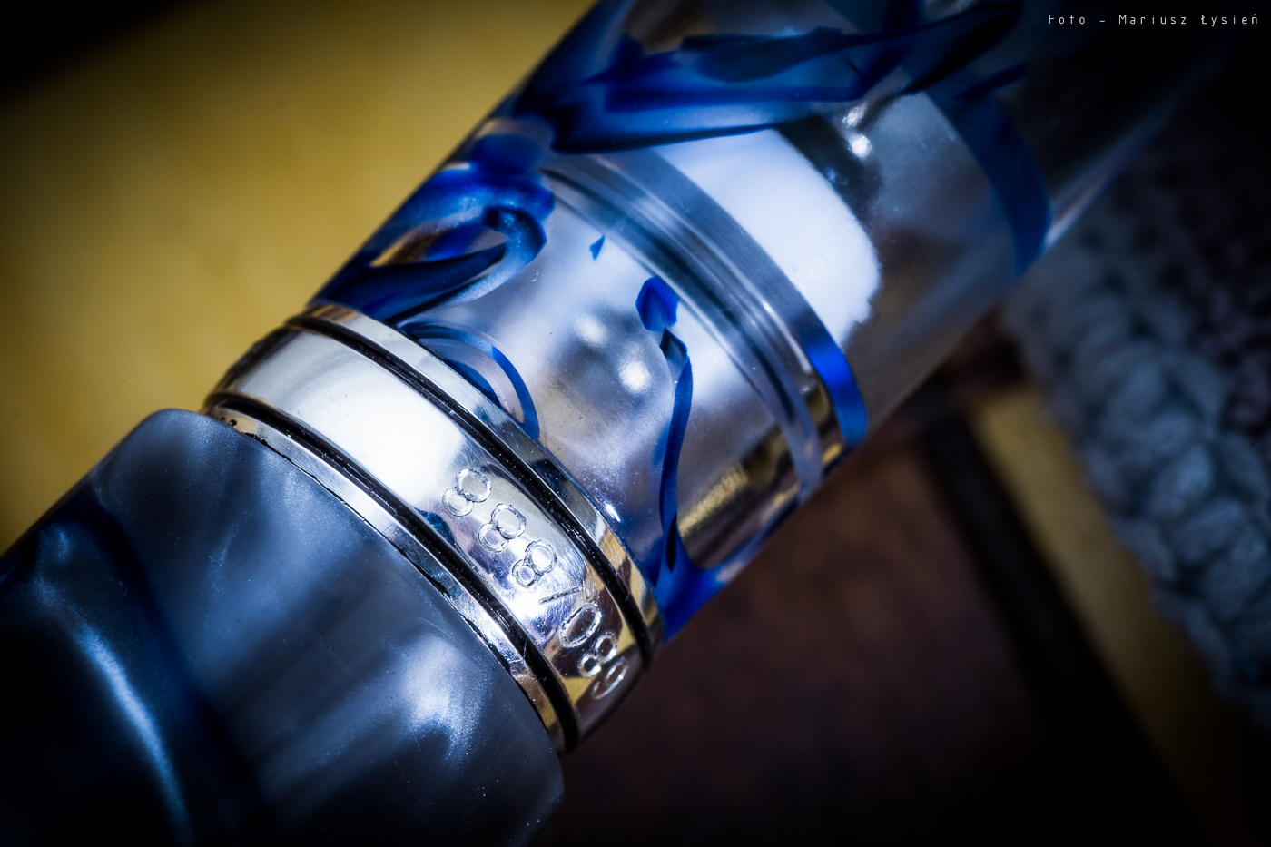 Z żywicy w kolorze niebiesko-szarym wykonano skuwkę, sekcję oraz pokrętło tłoka. Korpus będący w przeważającej większości transparentny, przenikają kolorowe „fale”. Zróżnicowany układ domieszek kolorystycznych sprawia, że każdy egzemplarz jest na swój sposób niepowtarzalny. Numer konkretnego egzemplarza możemy odczytać z pierścienia umieszczonego na korpusie.