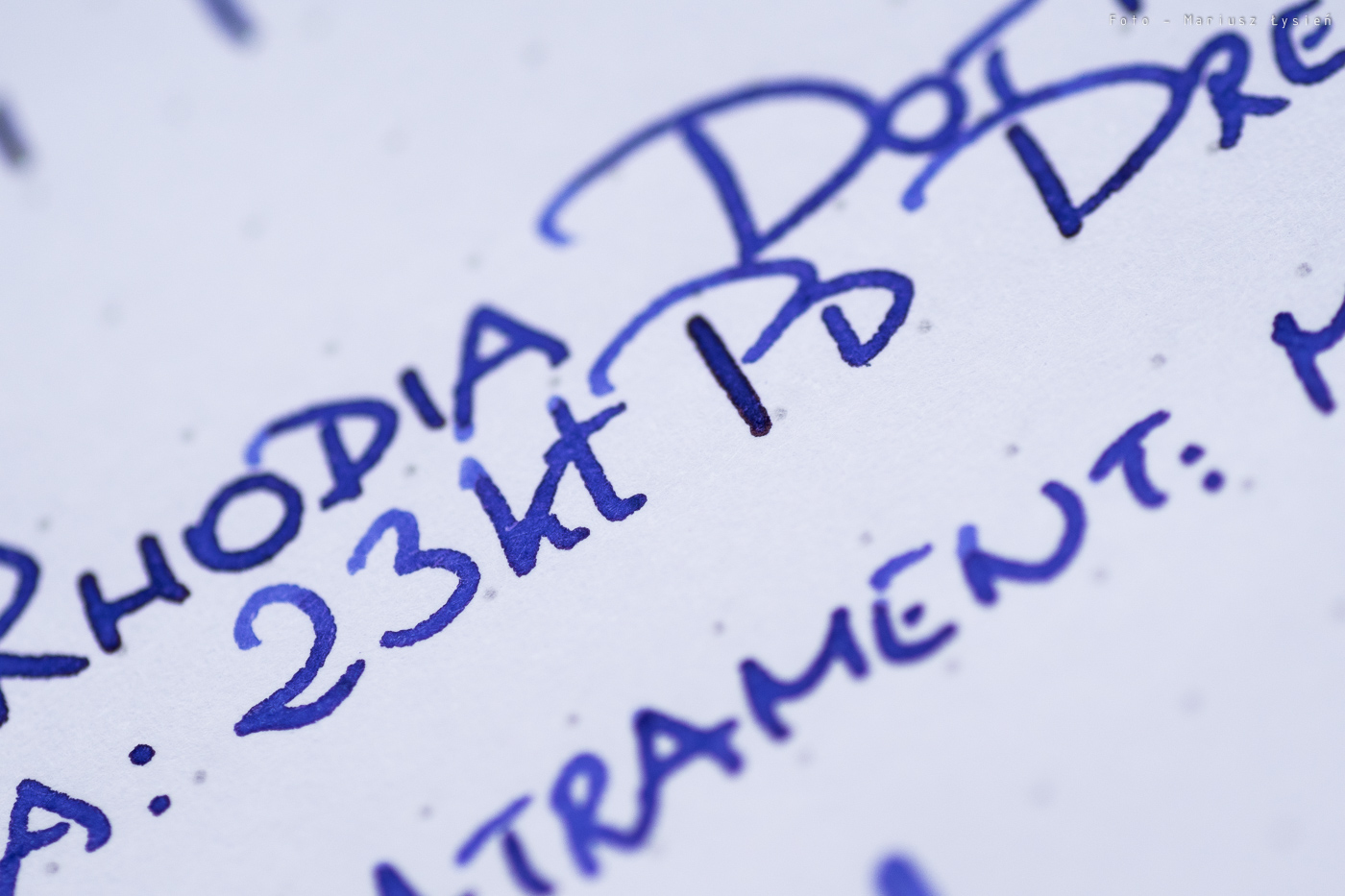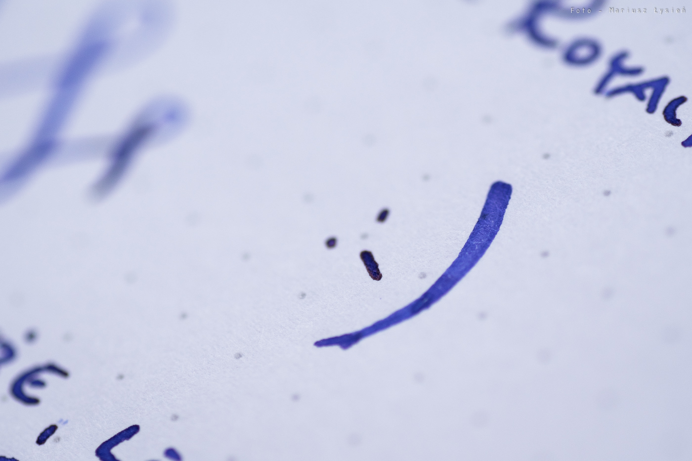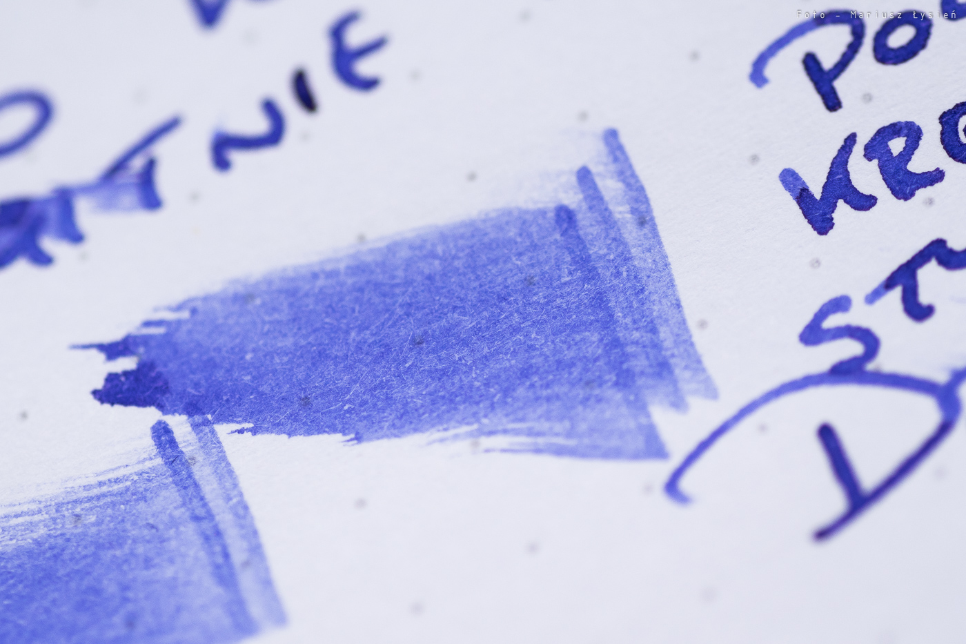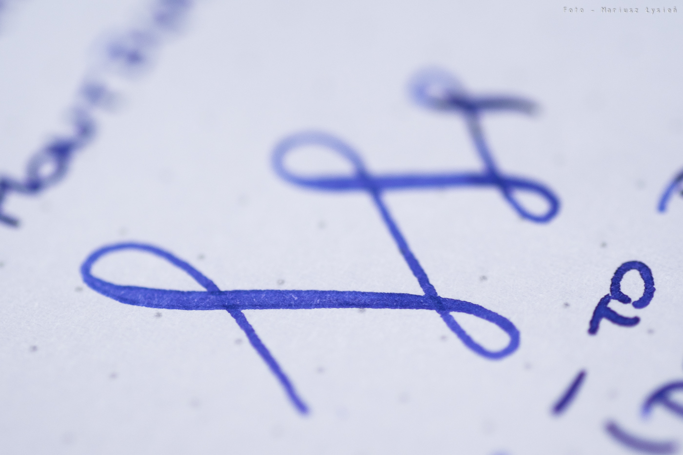 W piórze zamontowano wykonaną z 23 karatowego palladu stalówkę – mowa oczywiście o Dreamtouch’u. Producent oferuje stalówki w rozmiarach EF, F, M, B, BB oraz stub. W testowanym piórze zamontowana została M’ka. Jej działanie jest charakterystyczne dla stalówek palladowych montowanych w produktach firmy Visconti. Mokra i szeroka kreska oraz spora elastyczność to cechy wyróżniające stalówki z wyrazem „Dreamtouch” w nazwie. Pisanie tym piórem jest bardzo komfortowe, a stalówka jest dobrze oszlifowana. Wielokrotnie podkreślałem, że stalówki Dreamtouch należą do moich ulubionych i także w tym przypadku nic się nie zmienia.
