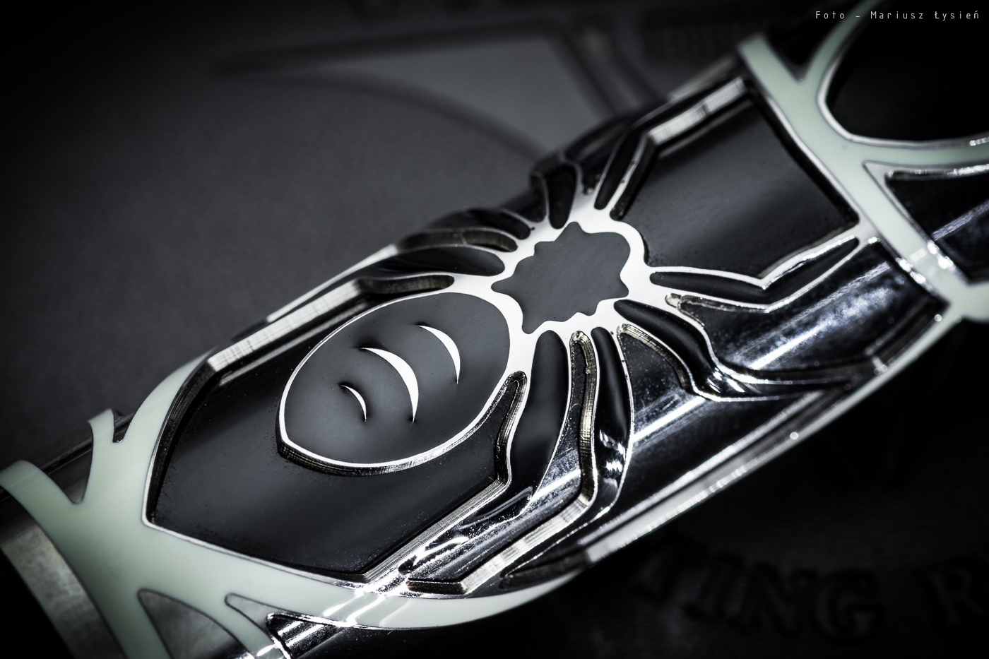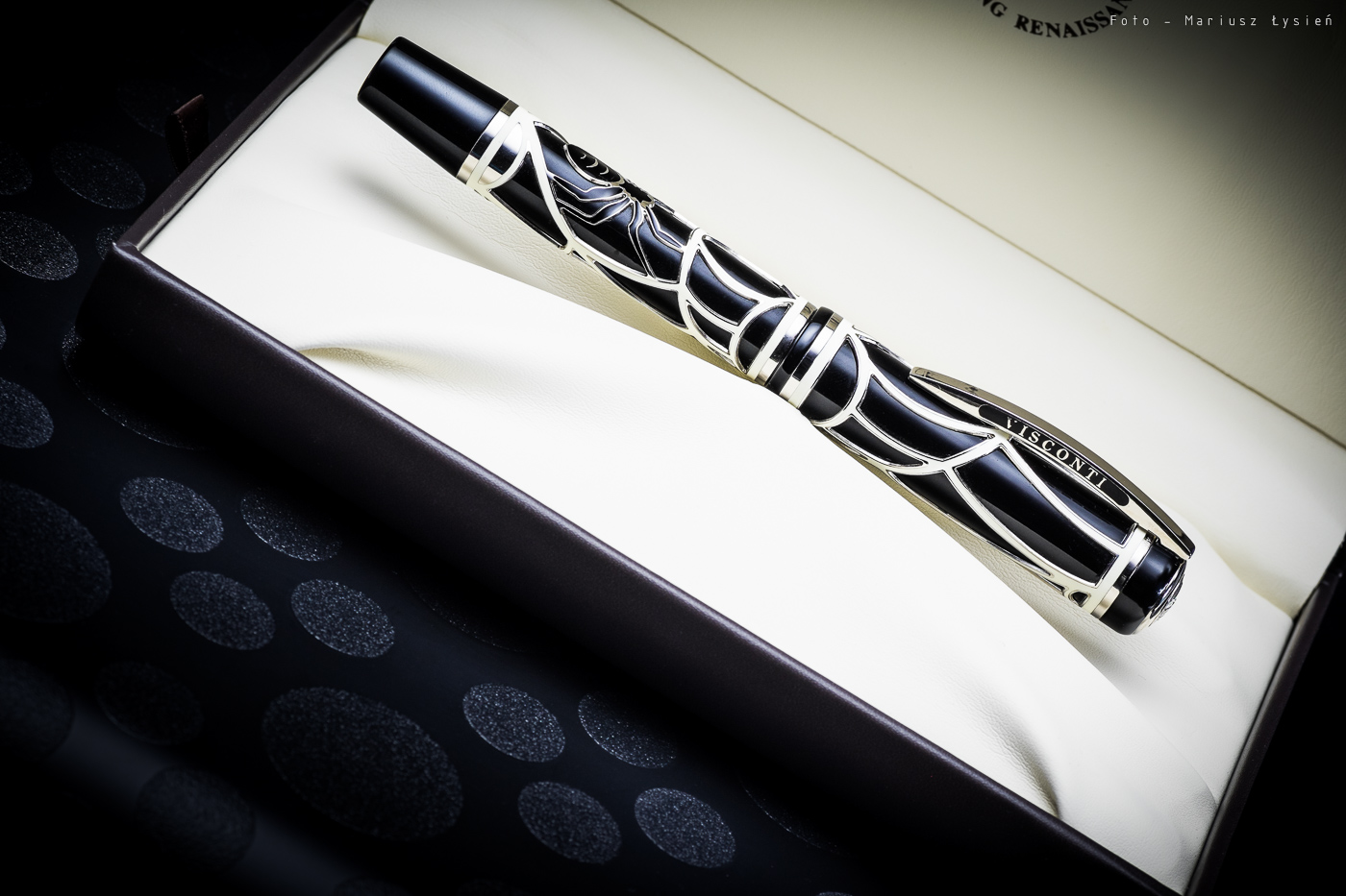 W tym przypadku klasyczna czerń żywicy została połączona z pajęczymi motywami rozciągniętymi zarówno na powierzchni korpusu jak i skuwki. Elementy te wykonano ze srebra sterling, a następnie wypełniono je białym lakierem. W zasadniczej części korpusu umieszczono podobiznę pająka. Cały wzór przygotowywany jest przez najlepszych złotników zatrudnionych w firmie Visconti. Trzeba przyznać, że wygląda on bardzo okazale i przykuwa spojrzenia osób, w których towarzystwie przyjdzie nam pisać tym piórem.