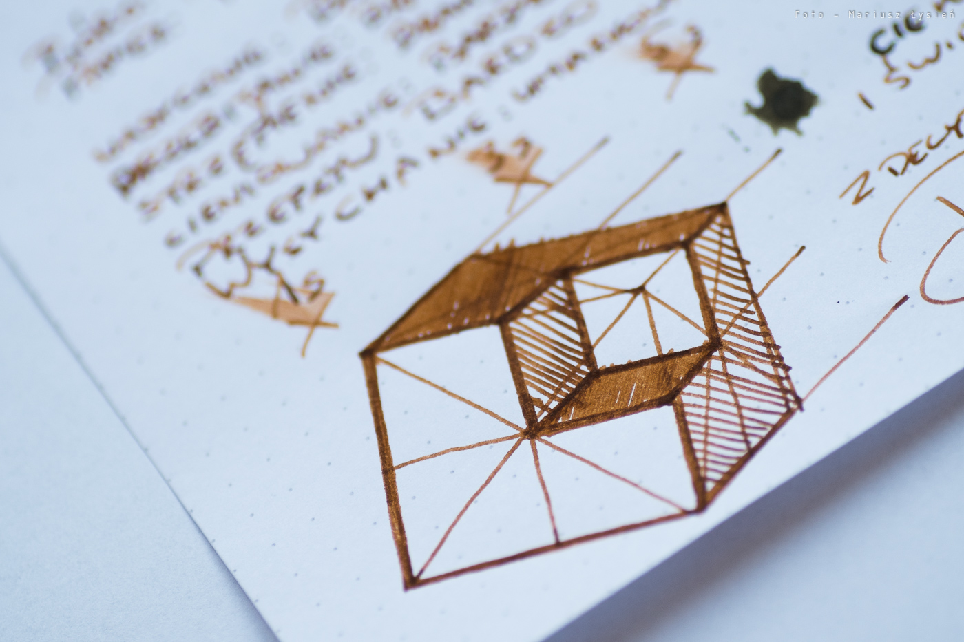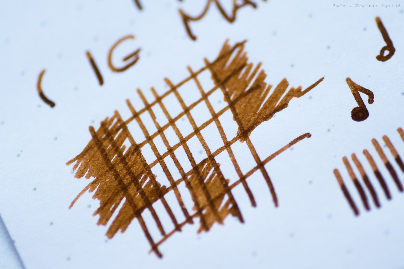 Atramentami pomarańczowymi bądź brązowymi (a także kombinacjami tych barw) często zdarza mi się pisać, więc nic dziwnego, że bylem mocno zainteresowany przetestowaniem tytułowego inkaustu. Zresztą przyznam, że kolor od samego początku przypadł mi do gustu.