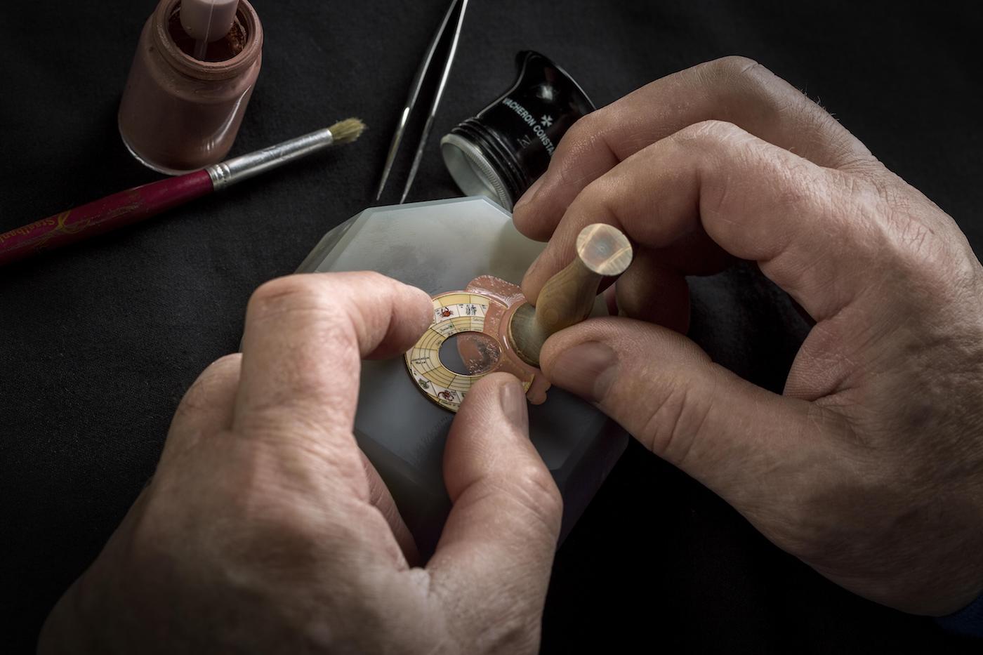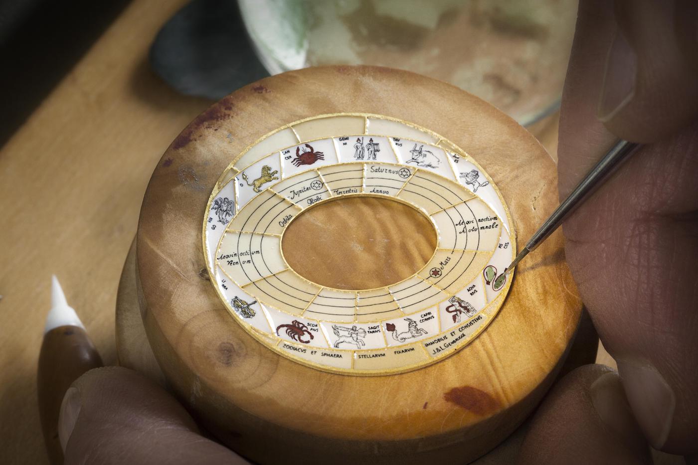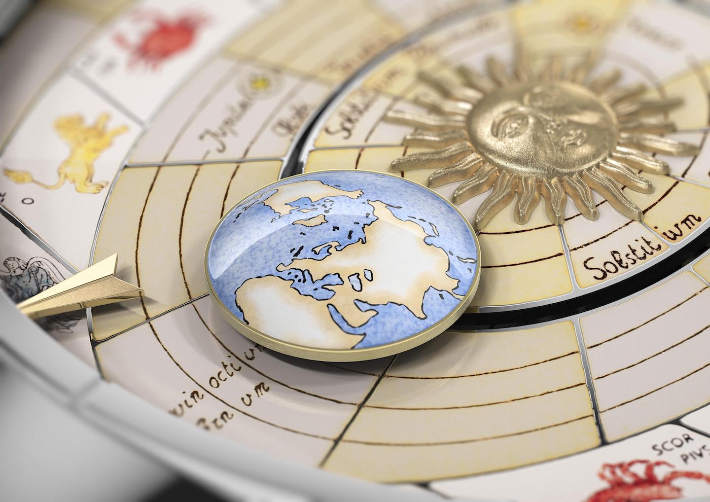 - emaliowana – wariant ten został przygotowany w technice Grand Feu. Na wykonaną ze złota bazę naniesiono tło w pastelowej kolorystyce. Pięć elips symbolizuje orbity pięciu dodatkowych planet. Zewnętrzny obszar został podzielony pomiędzy 12 znaków zodiaku. Producent podaje, że przygotowanie tak wykonanego cyferblatu zajmuje ponad miesiąc. Wymaga to także ogromnej ilości precyzyjnych operacji oraz wypalania w temperaturze około 850 stopni Celsjusza.