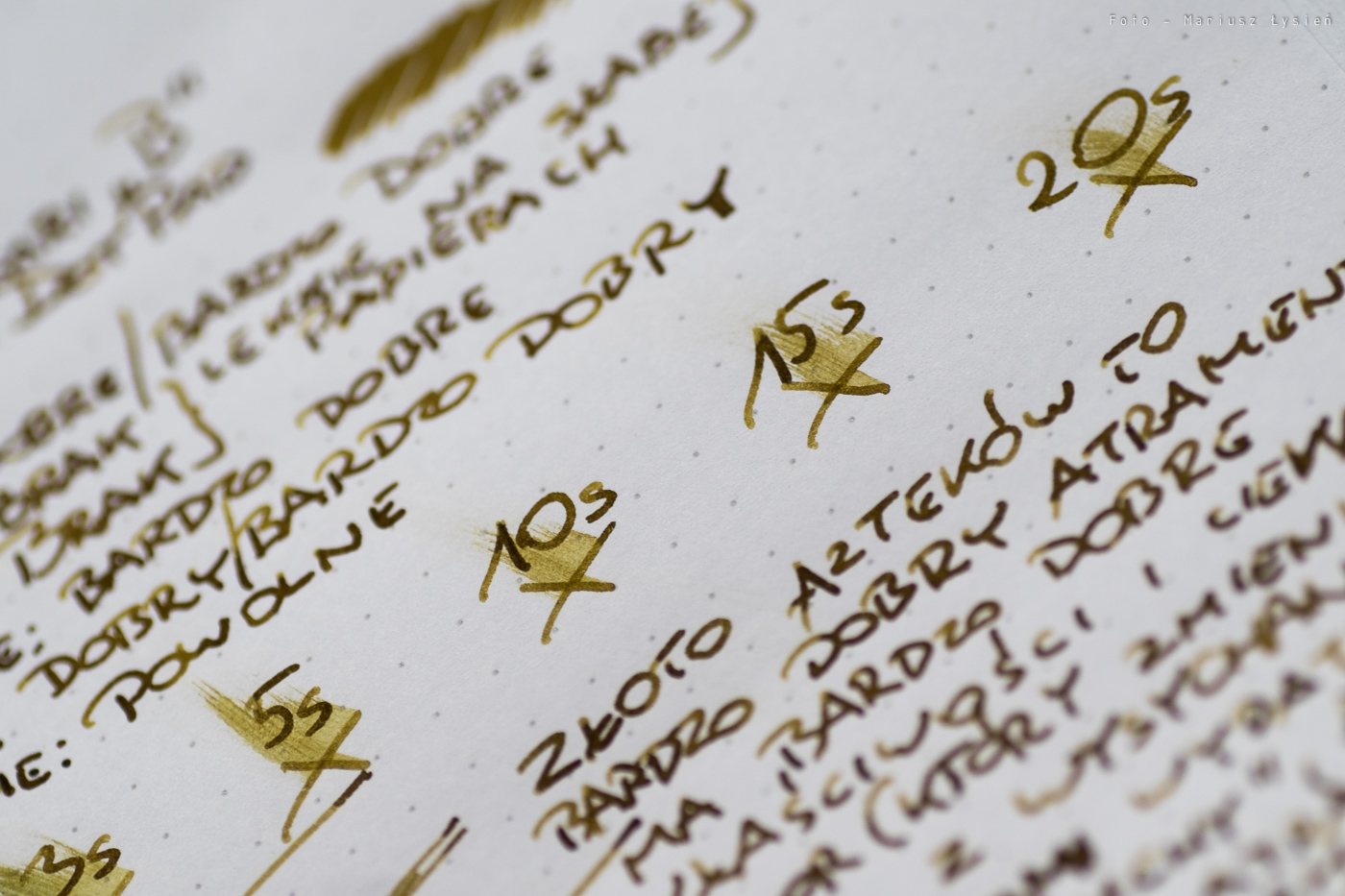 Złoto Azteków to ciekawa propozycja w portfolio firmy KWZ Ink. Bardzo dobre właściwości i dobry stosunek jakości do ceny sprawiają, że produkt ten jest warty polecenia.
