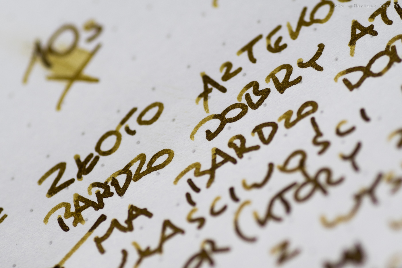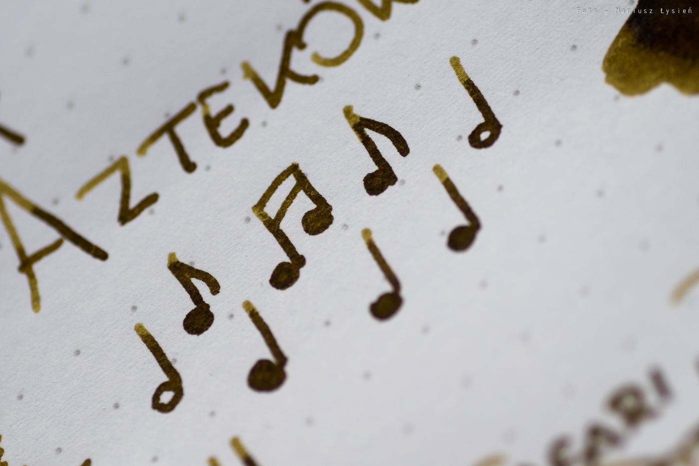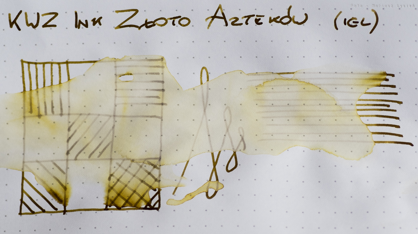 Złoto Azteków to jedna z najnowszych propozycji firmy KWZ Ink. To żelazowo-galusowy atrament o stosunkowo niewielkiej zawartości związków żelaza. Sprawia to, że nie jest specjalnie wymagający w użytkowaniu. Także intrygująca nazwa zachęca do przetestowania go i/lub zakupu.