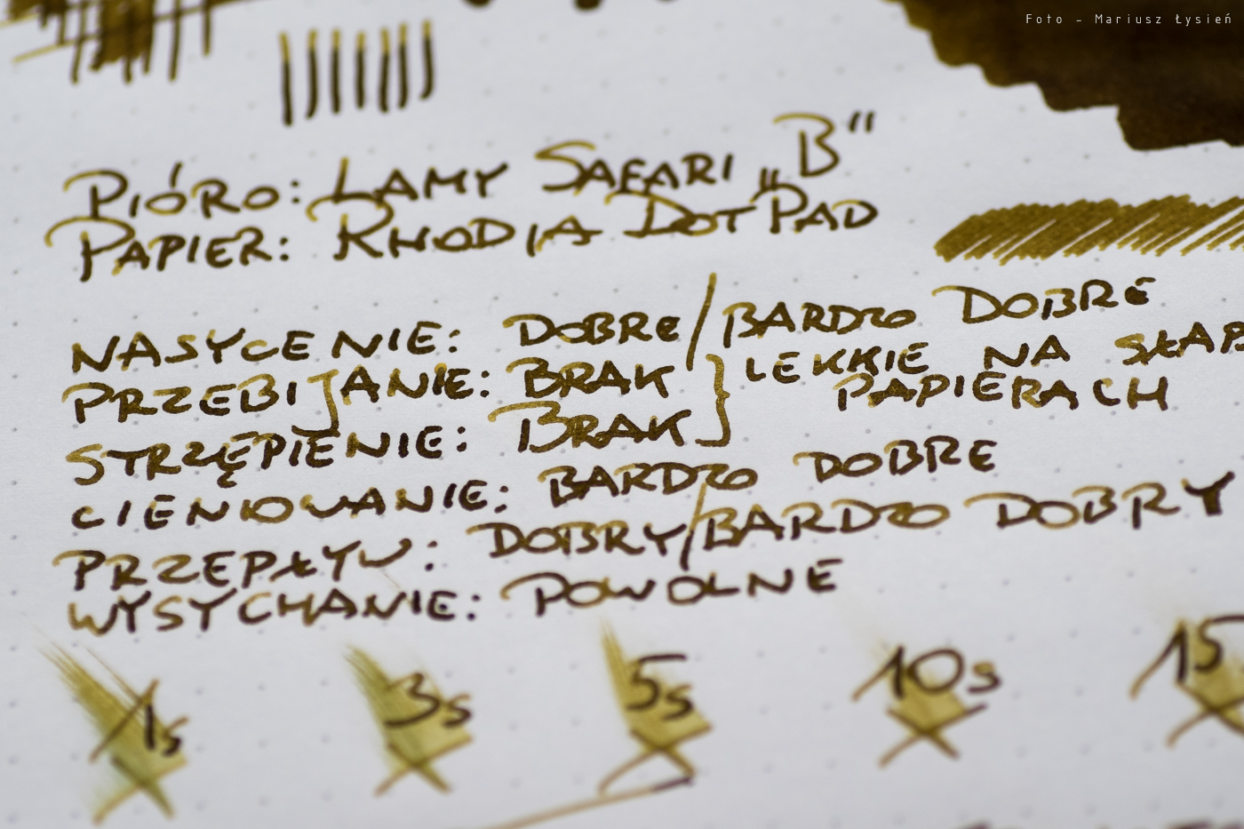 Cieniowanie zasługuje na bardzo dobrą notę. Przepływ jest bardzo dobry i nigdy w tej kwestii nie miałem z tym atramentem problemów, chociaż momentami potrafi sprawiać wrażenie bardziej „suchego” niż jest taki w rzeczywistości.