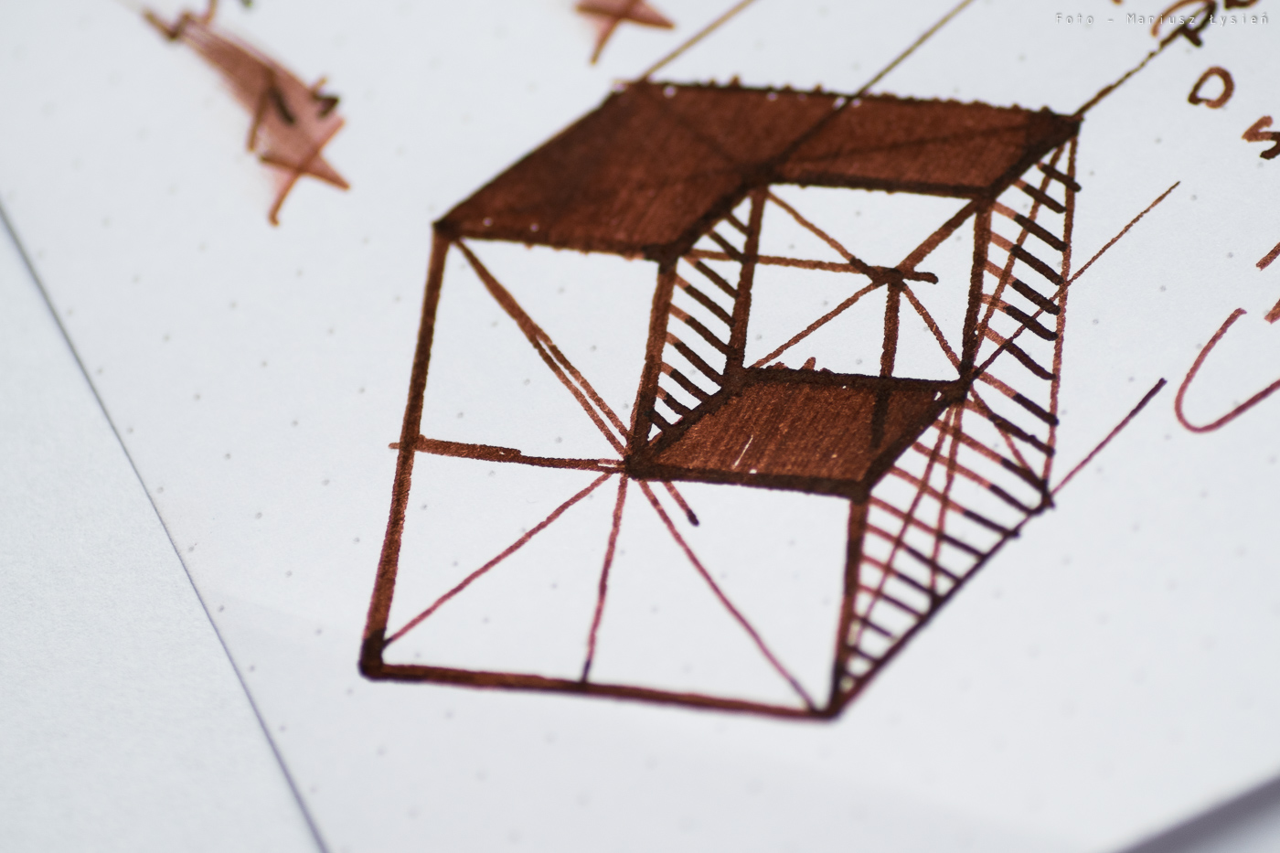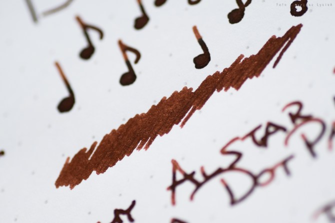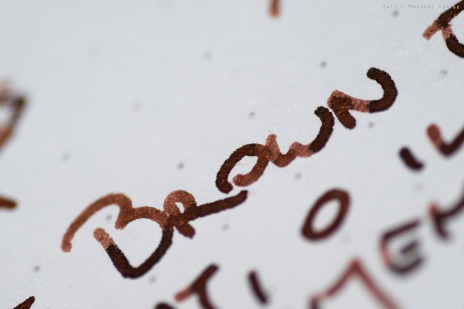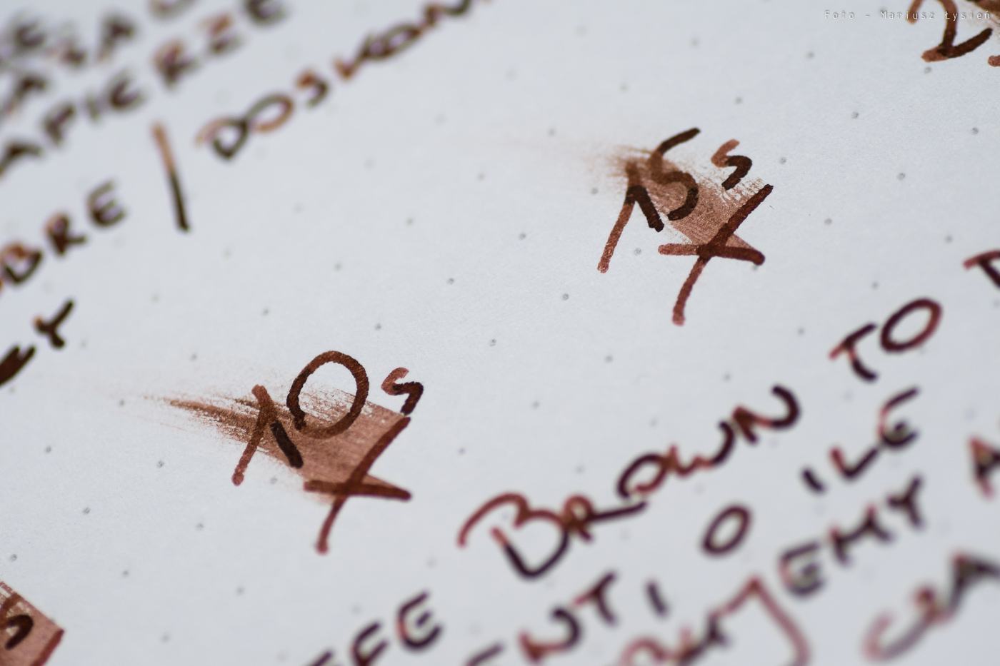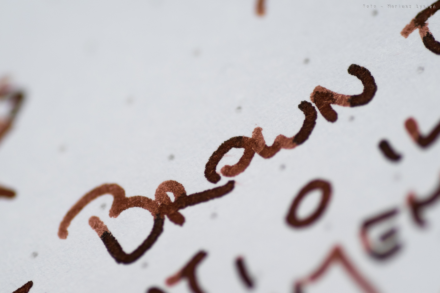 Cieniowanie jest bardzo dobre, a nawet można by je określić jako doskonałe. Na ocenę celującą z pewnością zasługuje przepływ. Pióro napełnione tym atramentem gładko sunie po powierzchni papieru, a ciecz jest podawana bardzo sprawnie nawet przy najszybszych ruchach pióra.