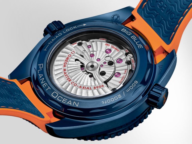 Podobnie jak w „Deep Black” tak i w „Big Blue” producent zastosował system Naiad Lock, który odpowiada za poprawne ułożenie napisów na deklu, po każdorazowym jego odkręceniu i zakręceniu. Przez transparentne wypełnienie dekla, które wykonano ze szkła szafirowego, możemy obserwować pracę mechanizmu. Jest to manufakturowy kaliber 8906 z automatycznym naciągiem sprężyny. Poza odpornością na ciśnienie wynoszące 60 bar, jest on także niewrażliwy na działanie pól magnetycznych do wartości 15000 gaussów. Za odpowiednią dużą rezerwę chodu (wynoszącą 60 godzin) odpowiadają dwa bębny sprężyny naciągowej. Do łożyskowania mechanizmu wykorzystano 38 kamieni. Z uwagi na przynależność do kolekcji Master Chronometer, kupujący wraz z zegarkiem otrzymają zarówno certyfikat COSC (Contrôle Officiel Suisse des Chronomètres), jak i certyfikat wydany przez METAS (Swiss Federal Institute of Metrology).