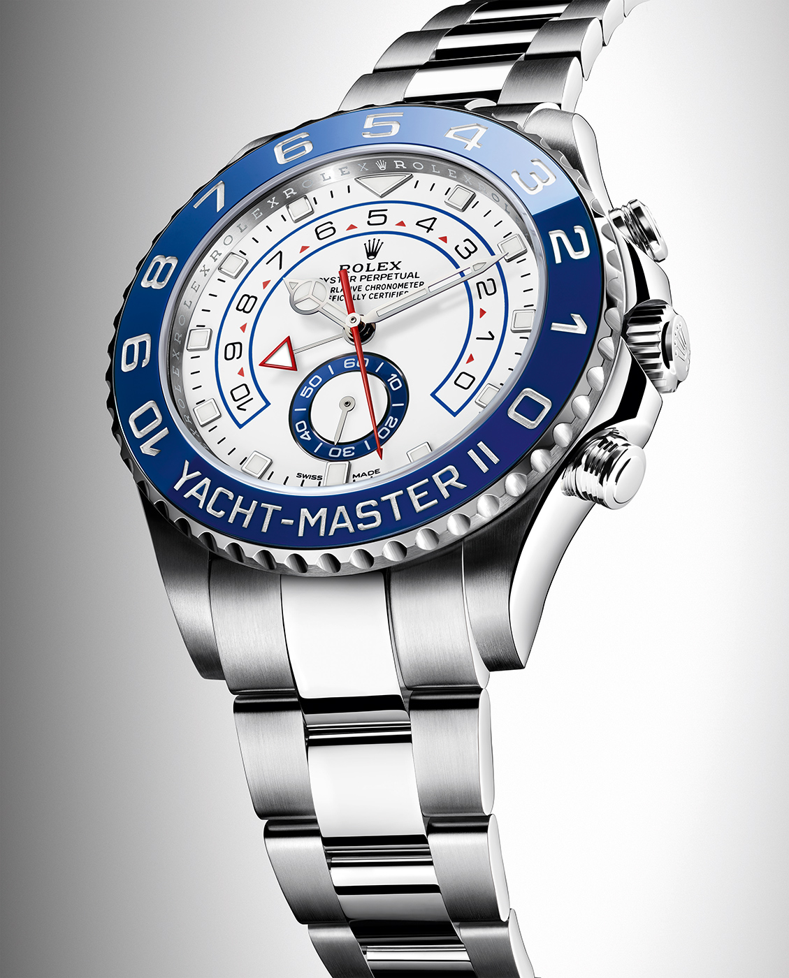 Yacht-Master II z pewnością nie należy do typowych czasomierzy, które plasują się w czołówkach list sprzedażowych danego producenta. Nic dziwnego – model ten pełni zupełnie inną funkcję wizerunkową. Praktycznie każdy istotny gracz w tej branży, który znany jest z zegarków dedykowanych dla osób mających kontakt z morzem (oczywiście na dzień dzisiejszy trzeba już wziąć na to stwierdzenie pewną poprawkę), ma w ofercie nie tylko zegarki dedykowane dla nurków, ale i czasomierze wyposażone w komplikacje dedykowane regatom żeglarskim. W taką właśnie funkcję wyposażono tytułowy model.