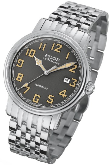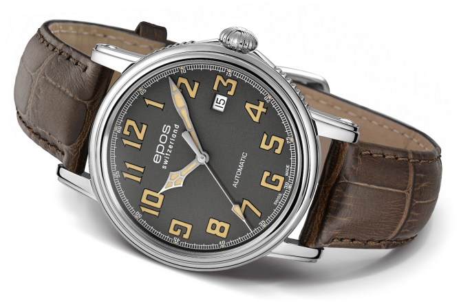 Na tegorocznych targach w Bazylei firma Epos zaprezentowała nowy model zegarka opartego o stylistykę w konwencji „pilot”. Ze względu na przynależność do kolekcji Emotion, czasomierz otrzymał kopertę o liniach charakterystycznych dla tej serii. Koperta wykonana ze stali nierdzewnej mierzy 41mm średnicy oraz 9 mm wysokości. Tak dobrane gabaryty sprawiają, że czasomierz będzie uniwersalny. Z pewnością będzie nadawał się do szerokiej palety ubiorów. Z jej prawej strony umieszczono owalną koronkę. Wodoodporność oszacowano na poziomie 50 metrów.