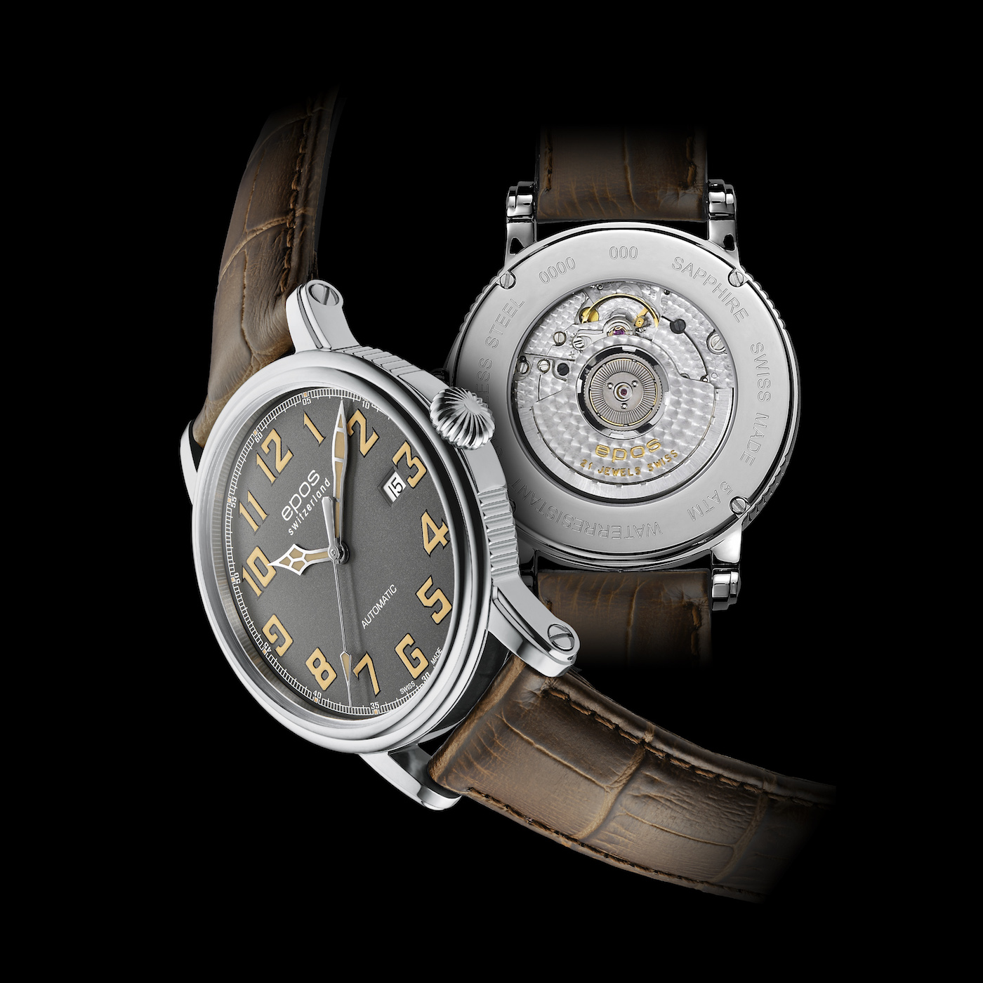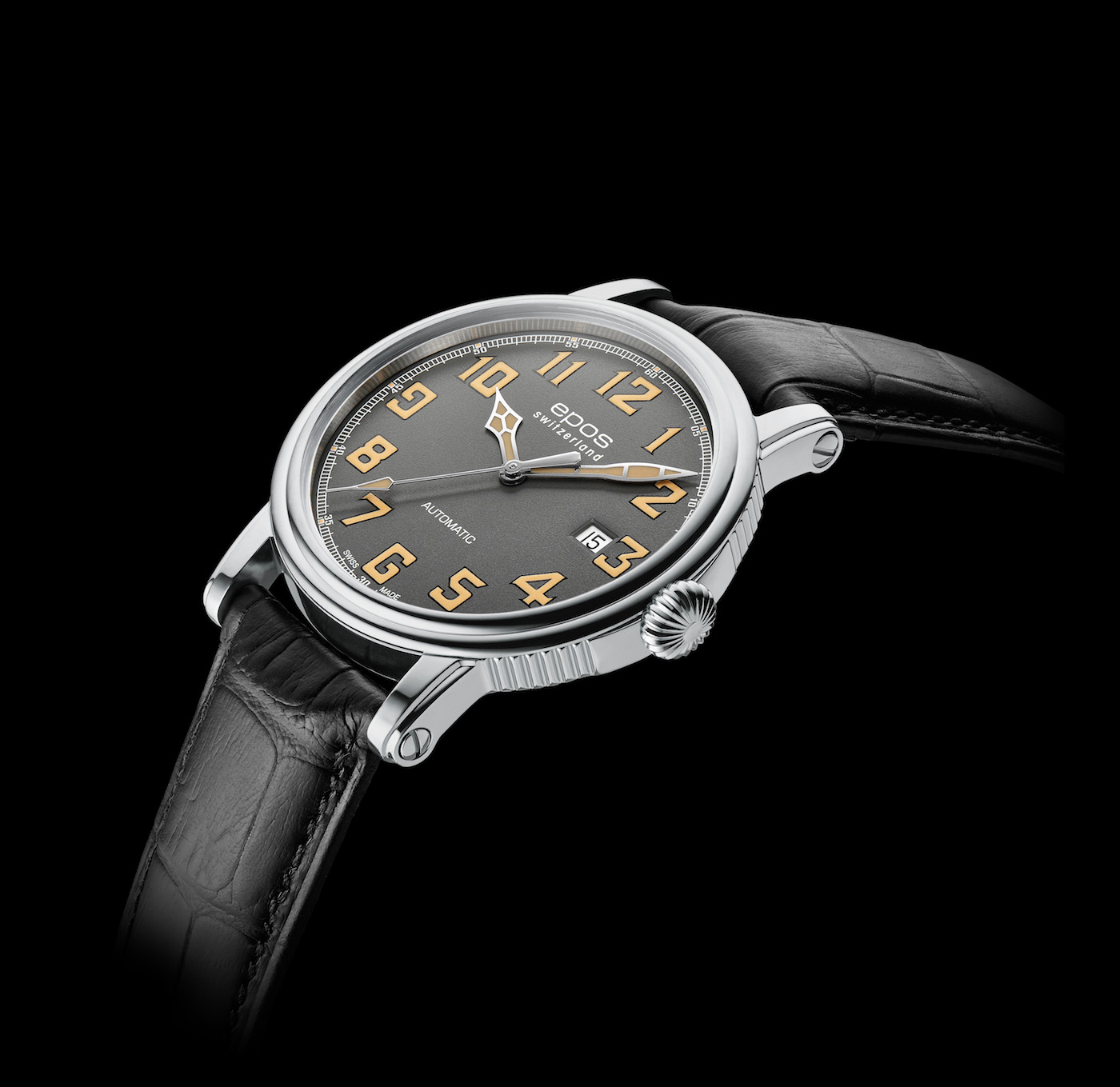 Na tegorocznych targach w Bazylei firma Epos zaprezentowała nowy model zegarka opartego o stylistykę w konwencji „pilot”. Ze względu na przynależność do kolekcji Emotion, czasomierz otrzymał kopertę o liniach charakterystycznych dla tej serii. Koperta wykonana ze stali nierdzewnej mierzy 41mm średnicy oraz 9 mm wysokości. Tak dobrane gabaryty sprawiają, że czasomierz będzie uniwersalny. Z pewnością będzie nadawał się do szerokiej palety ubiorów. Z jej prawej strony umieszczono owalną koronkę. Wodoodporność oszacowano na poziomie 50 metrów.