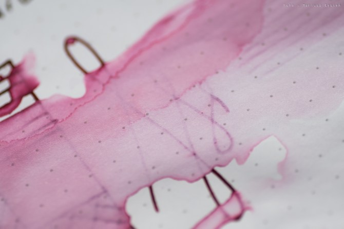 Cieniowanie jest moim zdaniem bardzo dobre, chociaż trzeba wziąć poprawkę na ciemną barwę atramentu. Pomimo tego cieniowanie jest widoczne. Przepływ jest doskonały. Powiedziałbym, że wręcz wzorcowy. Pióro napełnione tym atramentem sunie gładko i aksamitnie po powierzchni kartki papieru. Po prostu „wow”.